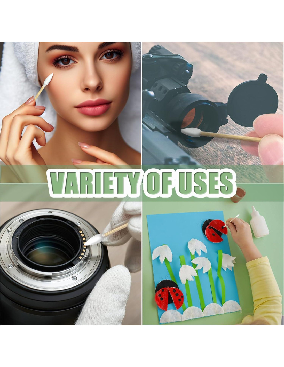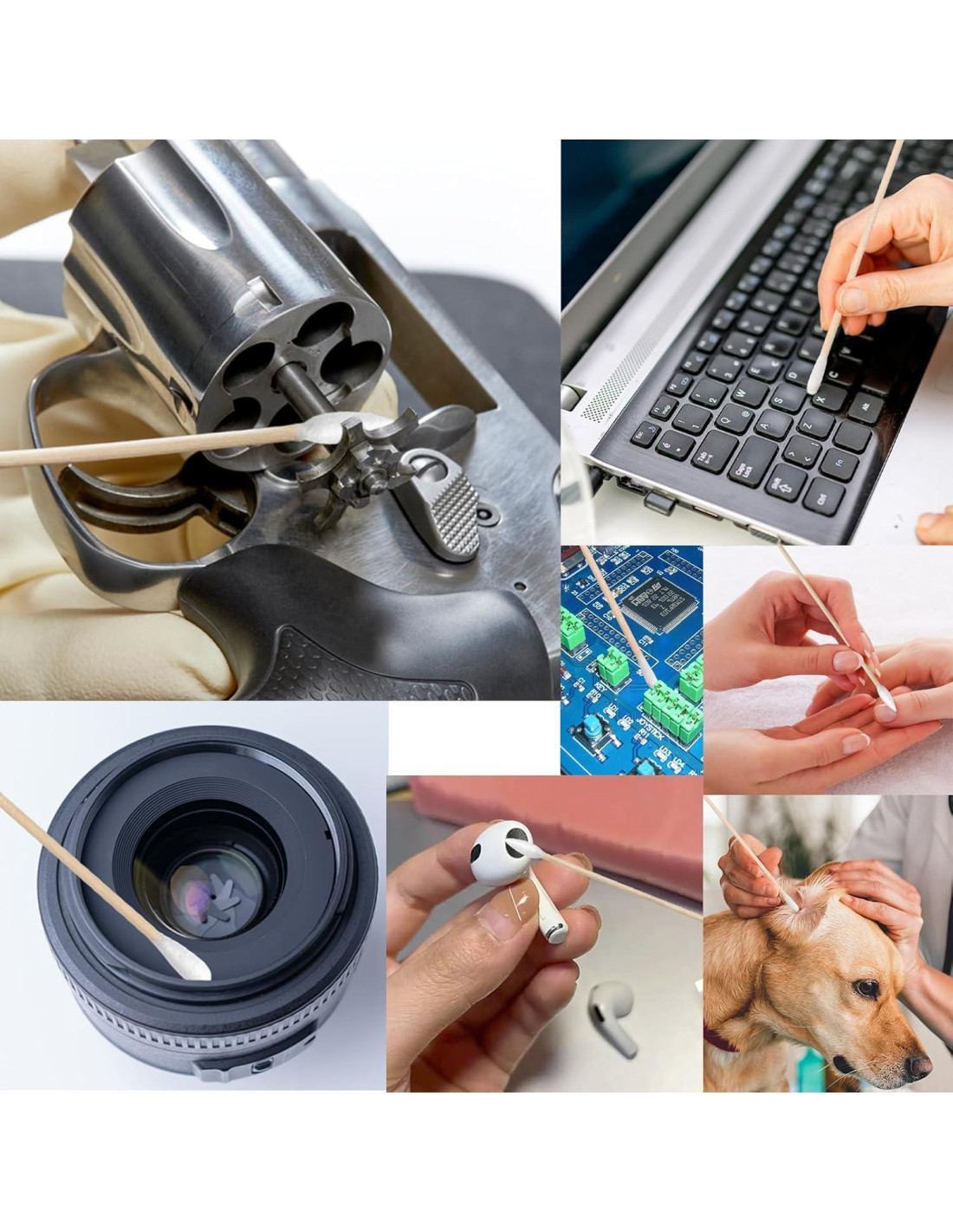 - Bastones Largos Versátiles: El bastón de algodón largo es perfecto para tareas de limpieza precisas. Con 100 puntas redondas y 100 puntas puntiagudas, ofrecen flexibilidad para trabajos detallados. Ideal para aplicaciones en electrónica, armas, cuidado de mascotas, maquillaje y manualidades.