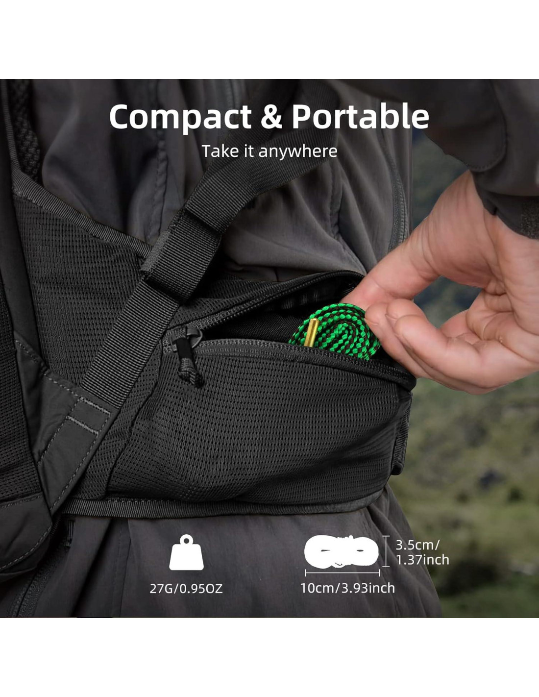 - Compacto y Ligero: Nuestra cuerda de limpieza de 22/.223 es ligera y compacta, cabe fácilmente en tu bolsa de tiro.