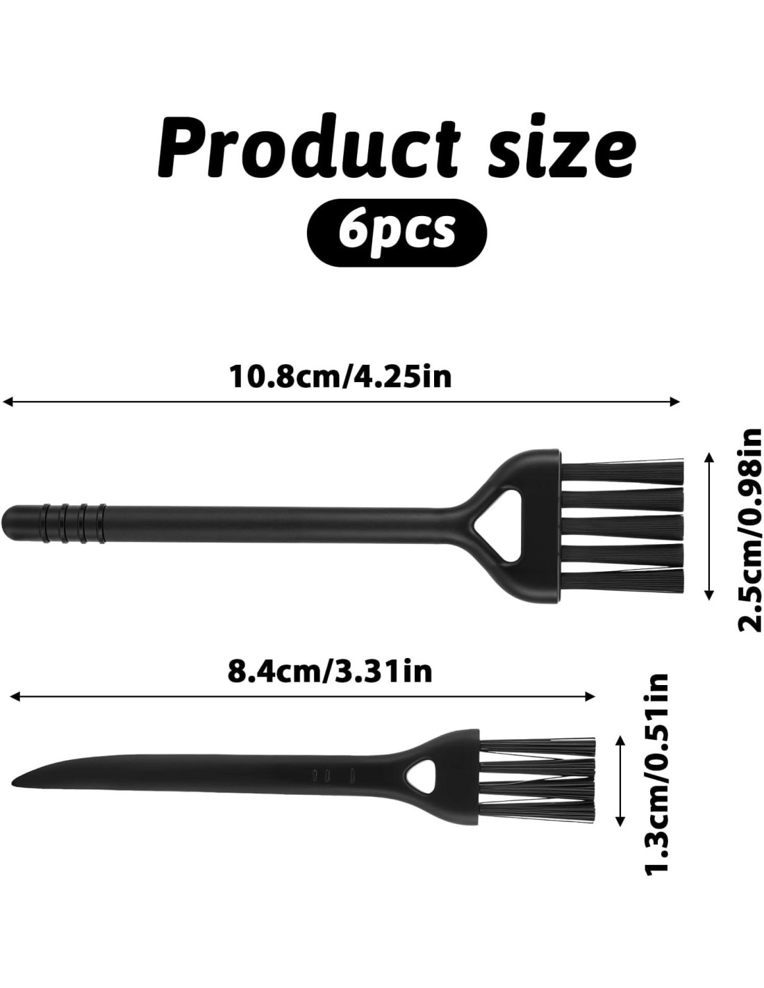Nombre del producto: Cepillos pequeños para limpiar piezas pequeñas Color: Negro Material: Plástico + Nylon Longitud: 10.8cm (4.2 pulgadas) 8.4cm (3.3 pulgadas) Lista de empaque: 6 cepillos para limpiar teclados