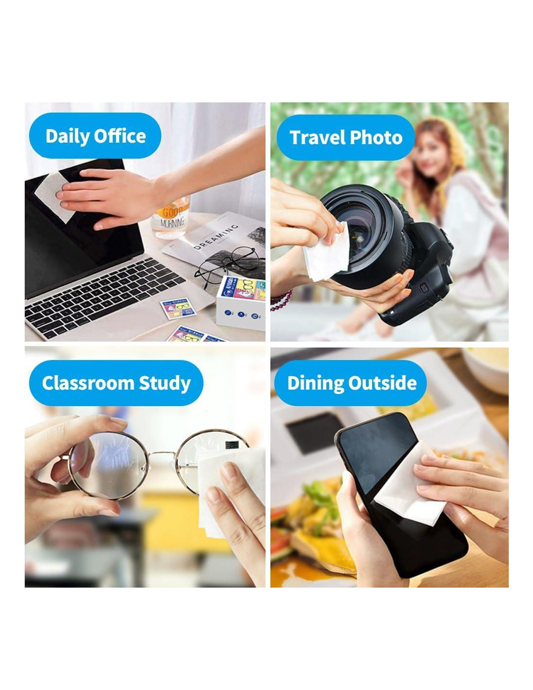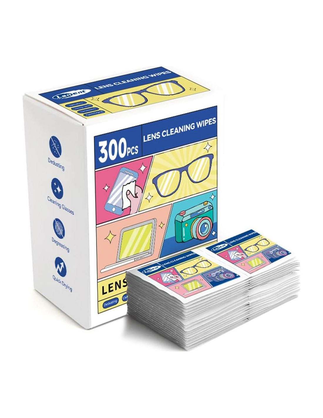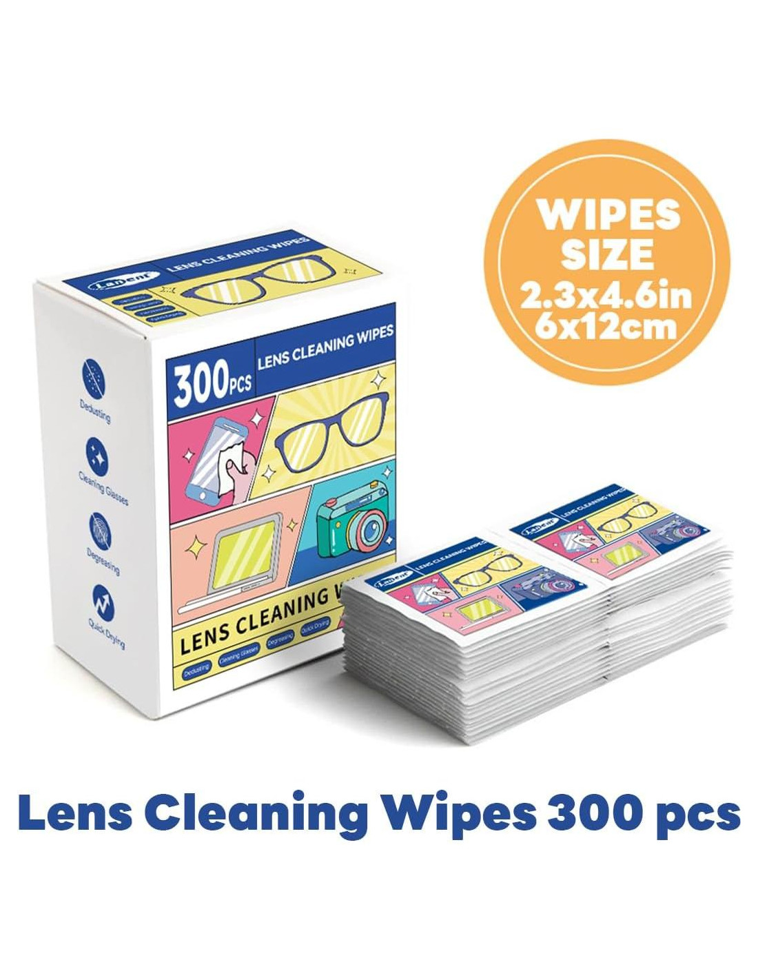 - 300 toallitas son adecuadas para todo tipo de lentes y pantallas, incluyendo gafas de sol, gafas de lectura y lentes recetados, iphones, ipads, tabletas, laptops, computadoras, espejos, lentes de cámaras DSLR y más.