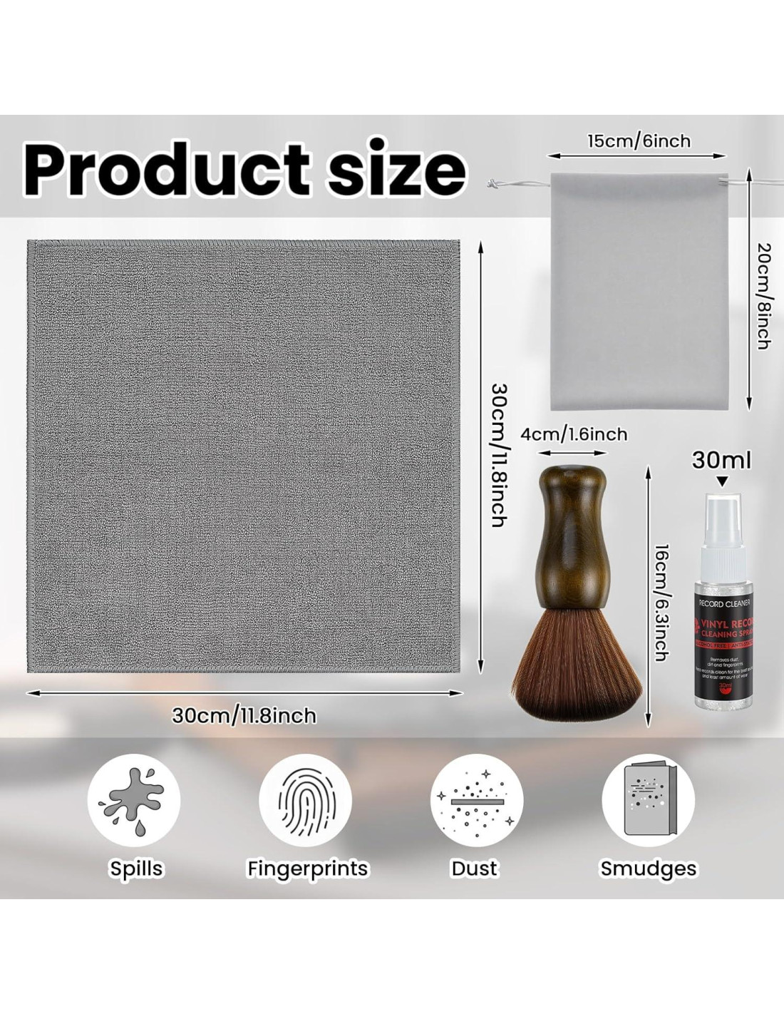 - Kit de Limpieza de Discos Ideal: el diseño 5 en 1 del kit de limpieza de discos de vinilo proporciona una limpieza integral para tu colección de discos de vinilo! Cepillo suave para eliminar suavemente el polvo, 60 ml de limpieza especial sin alcohol con cepillo de terciopelo para limpieza profunda, paño de limpieza para eliminar el exceso de agua, y viene con una conveniente bolsa de almacenamiento con cuerda