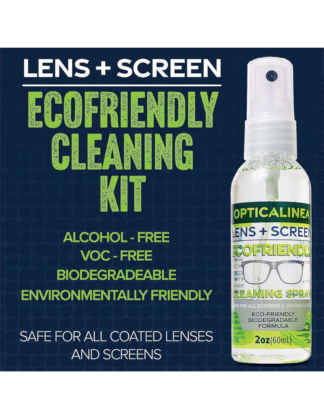 - OPTICALINEA ECOFRIENDLY KIT DE LIMPIEZA DE LENTES + PANTALLAS es un limpiador de lentes conveniente y ecológico que proporciona una limpieza duradera, de secado rápido, sin rayas, segura y efectiva para todos los tipos de lentes ópticos recubiertos y pantallas de dispositivos.