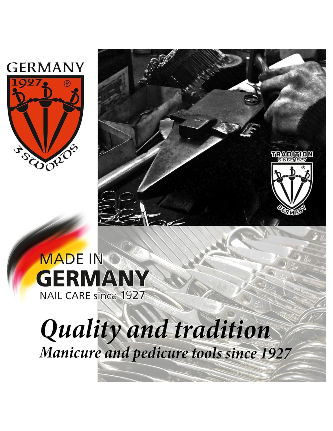 - KIT DE CUIDADO DE UÑAS de 3 Espadas Alemania con herramientas profesionales de manicura y pedicura. Nuestros sets para uso en casa y de viaje convencen por los más altos niveles de calidad, diseño moderno, durabilidad e ingeniería alemana combinados con un servicio al cliente de primera clase.