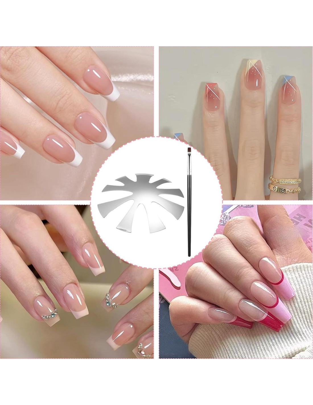- [Contenido del Paquete] El juego de herramientas de punta francesa para uñas contiene 14 herramientas, incluyendo 3 cortadores de punta francesa, 5 bolígrafos para uñas, 1 cortador de punta de uñas y 5 cuchillas de repuesto. La herramienta de uñas francesa puede crear formas de uñas, decoraciones pintadas y cortes detallados, satisfaciendo las necesidades profesionales de salones de uñas y creaciones de DIY en casa