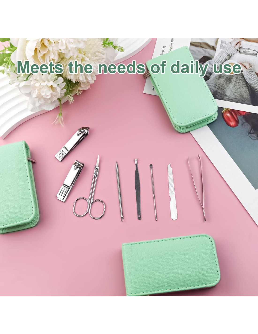 - Portátil y fácil de llevar: Este juego de cortauñas incluye una hermosa caja de almacenamiento para fácil almacenamiento y transporte, permitiéndote mantener tus uñas ordenadas y hermosas en cualquier momento y lugar. Ya sea en casa o en movimiento, este juego de cortauñas es tu elección ideal, perfecto para diversas ocasiones como en casa y de viaje