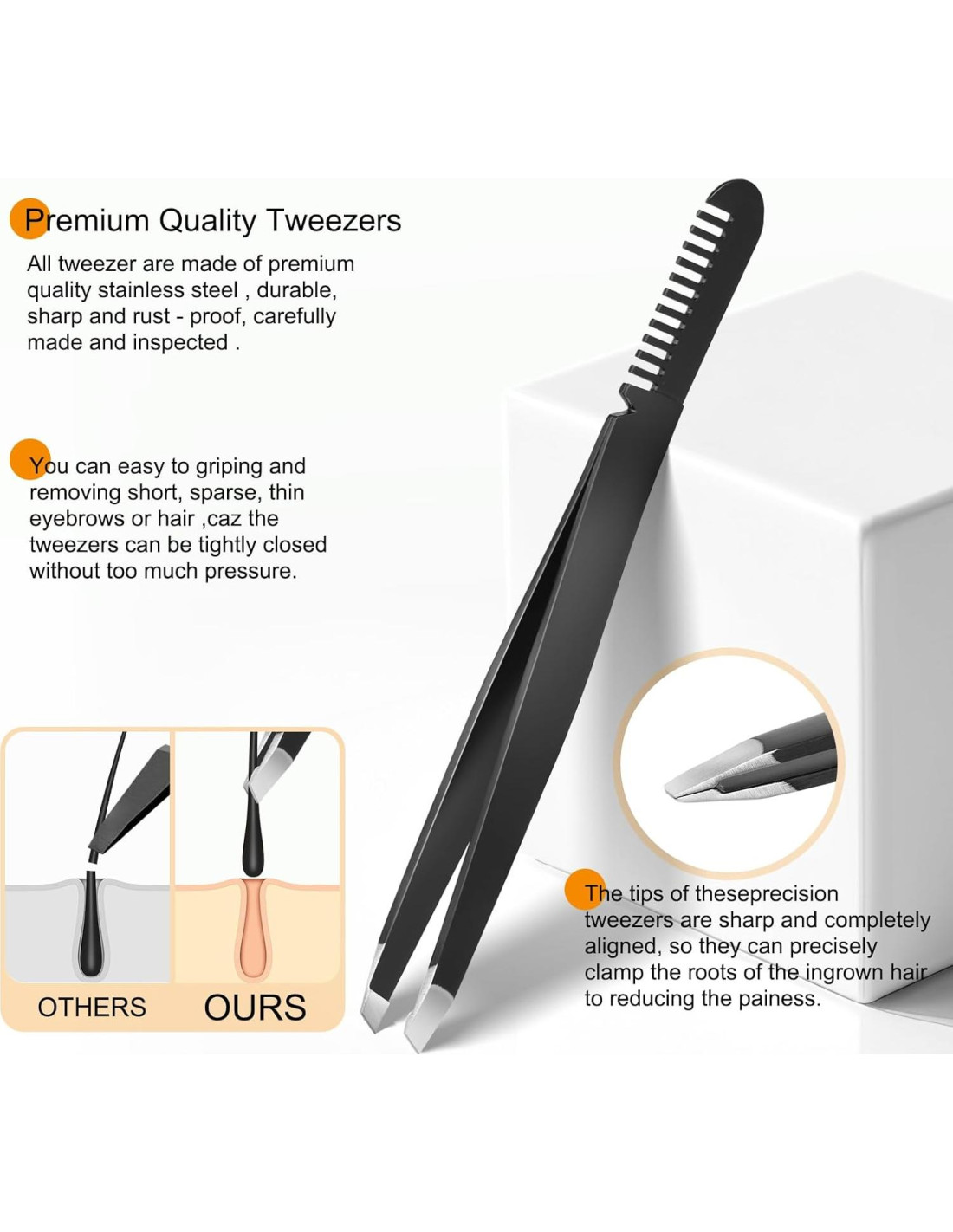 - 2. Pinzas de Calidad Premium: Todas las pinzas están hechas de acero inoxidable de calidad premium, duraderas, afiladas y a prueba de óxido, cuidadosamente fabricadas e inspeccionadas. Las puntas de estas pinzas de precisión son afiladas y están completamente alineadas, por lo que pueden sujetar con precisión las raíces del vello encarnado para reducir el dolor. Puedes agarrar y eliminar fácilmente cejas o vello corto, escaso y delgado, ya que las pinzas pueden cerrarse firmemente sin demasiada presión.