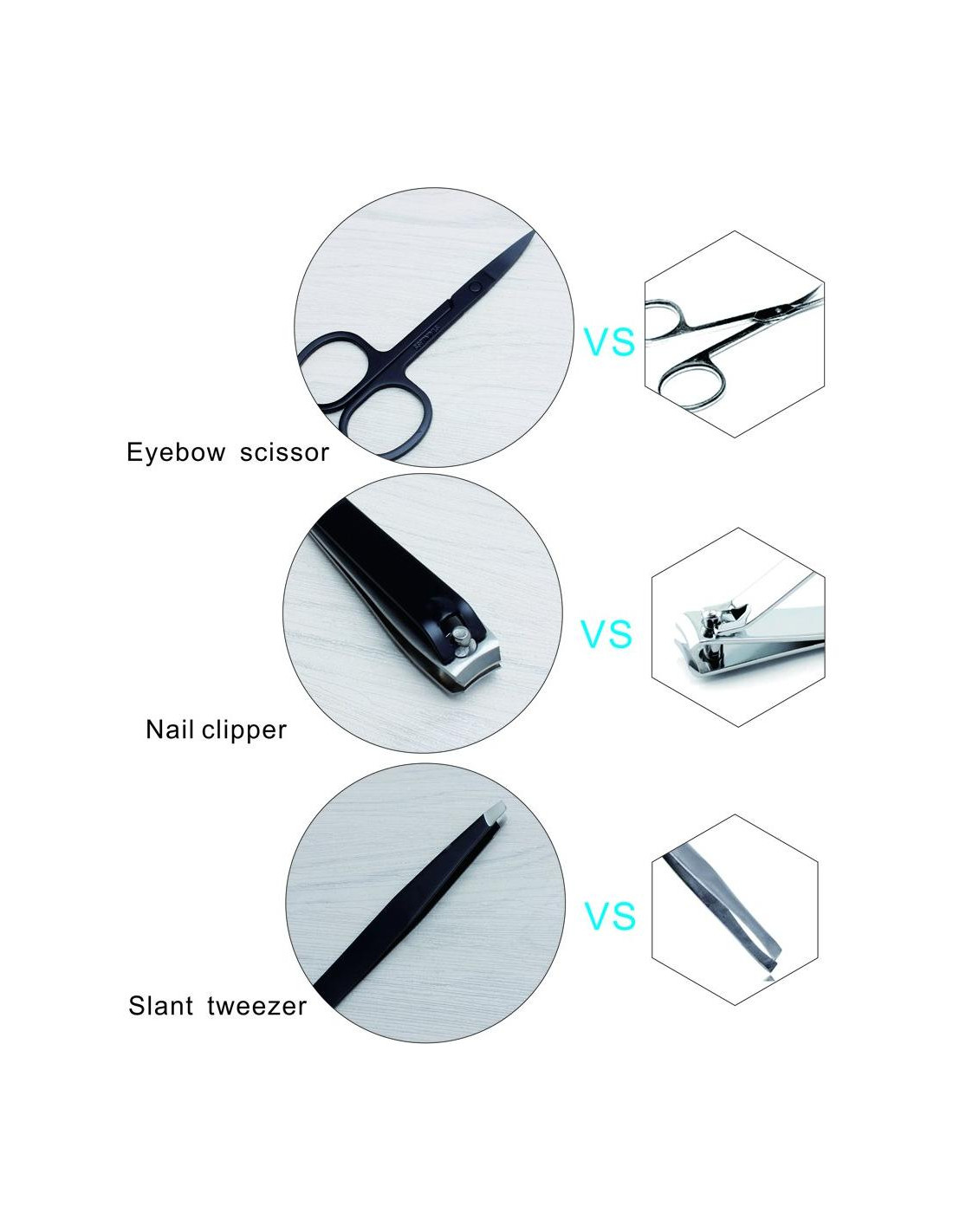 - Kit 3 en 1 - El juego de cortauñas de acero inoxidable premium incluye cortauñas, pinzas inclinadas, tijeras. Cada herramienta de belleza para uñas tiene un propósito diferente en este kit de manicura.