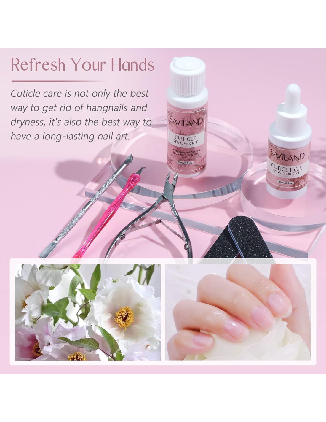 - KIT DE REMOVEDOR DE CUTÍCULAS PROFESIONAL Y COMPLETO: El kit de removedor de cutículas Saviland contiene 60 ml/2.02 fl oz de crema removedora de cutículas, 30 ml/1.01 fl oz de aceite de cutículas, cortador de cutículas, empujador de cutículas, tenedor de cutículas, que puede proporcionarte todo para el cuidado de las uñas. No solo te ayudará a eliminar la piel muerta/cutícula, sino que también traerá profesionalismo y comodidad de salón a tu cuidado de uñas. Haz que tu cuidado diario de uñas sea fácil y conveniente en casa.