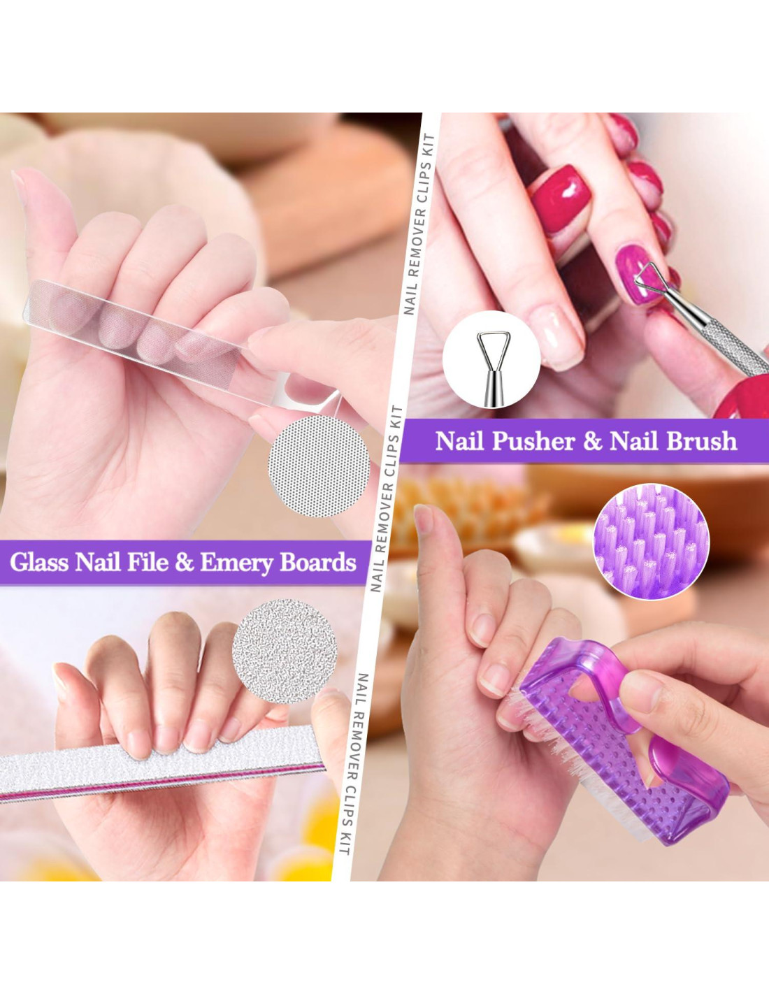 - Tu Solución de Manicura en Casa: El paquete incluye 10 clips morados para remover esmalte, 300 almohadillas de algodón, brocha, empujador de cutículas y abrillantador de uñas de vidrio. Un kit que satisface tu necesidad de remojar, disolver y quitar el gel. Valioso kit de removedor de uñas para uso en salón y en casa