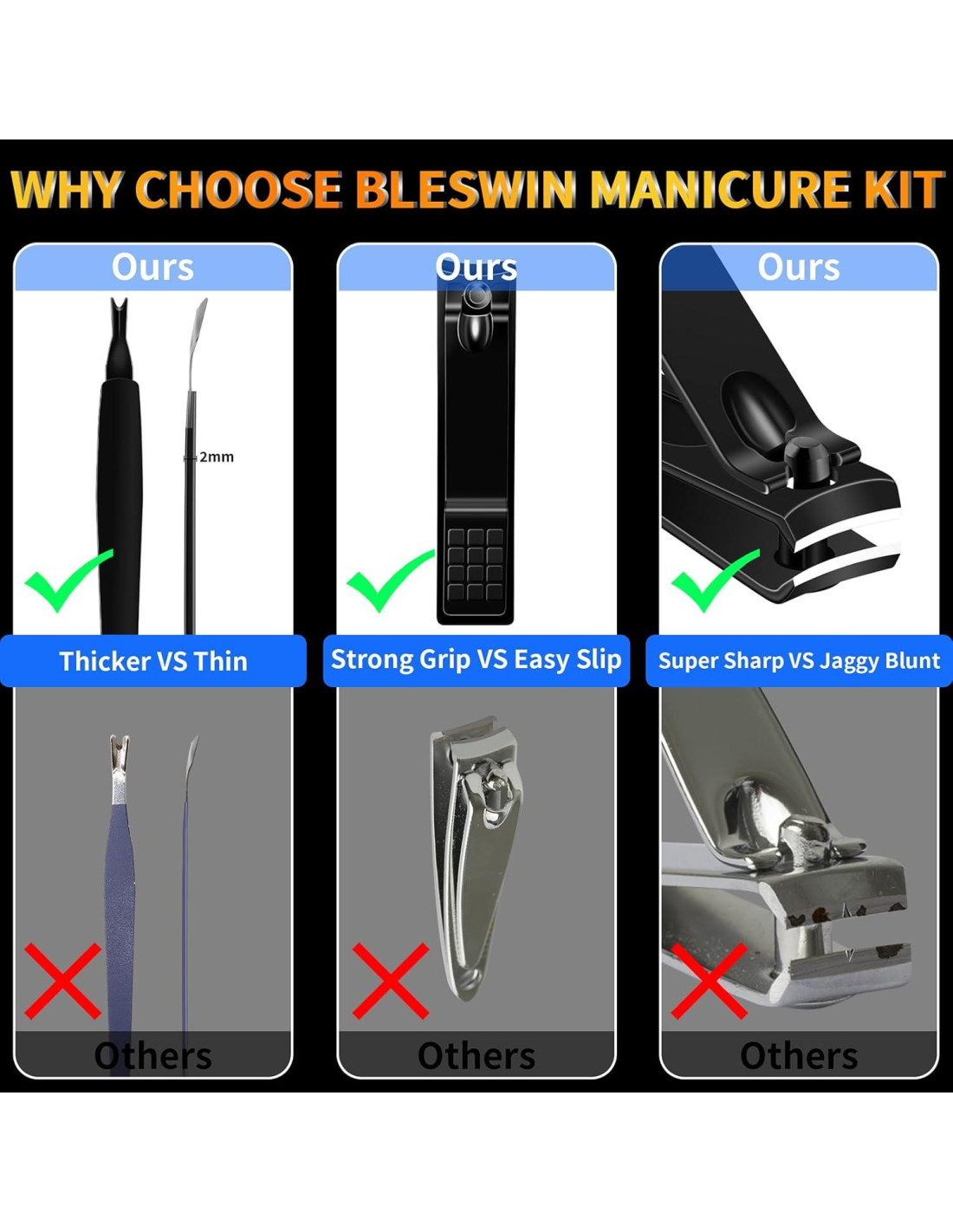 - Kit de Cuidado de Uñas Práctico - Mantener uñas limpias y saludables es fácil con el kit de cuidado de uñas BLESWIN. Mantén tus manos y pies en buen estado recortando y eliminando piel muerta y cutículas regularmente. El set incluye herramientas faciales esenciales para mantener tu rostro luciendo fresco y cuidado.