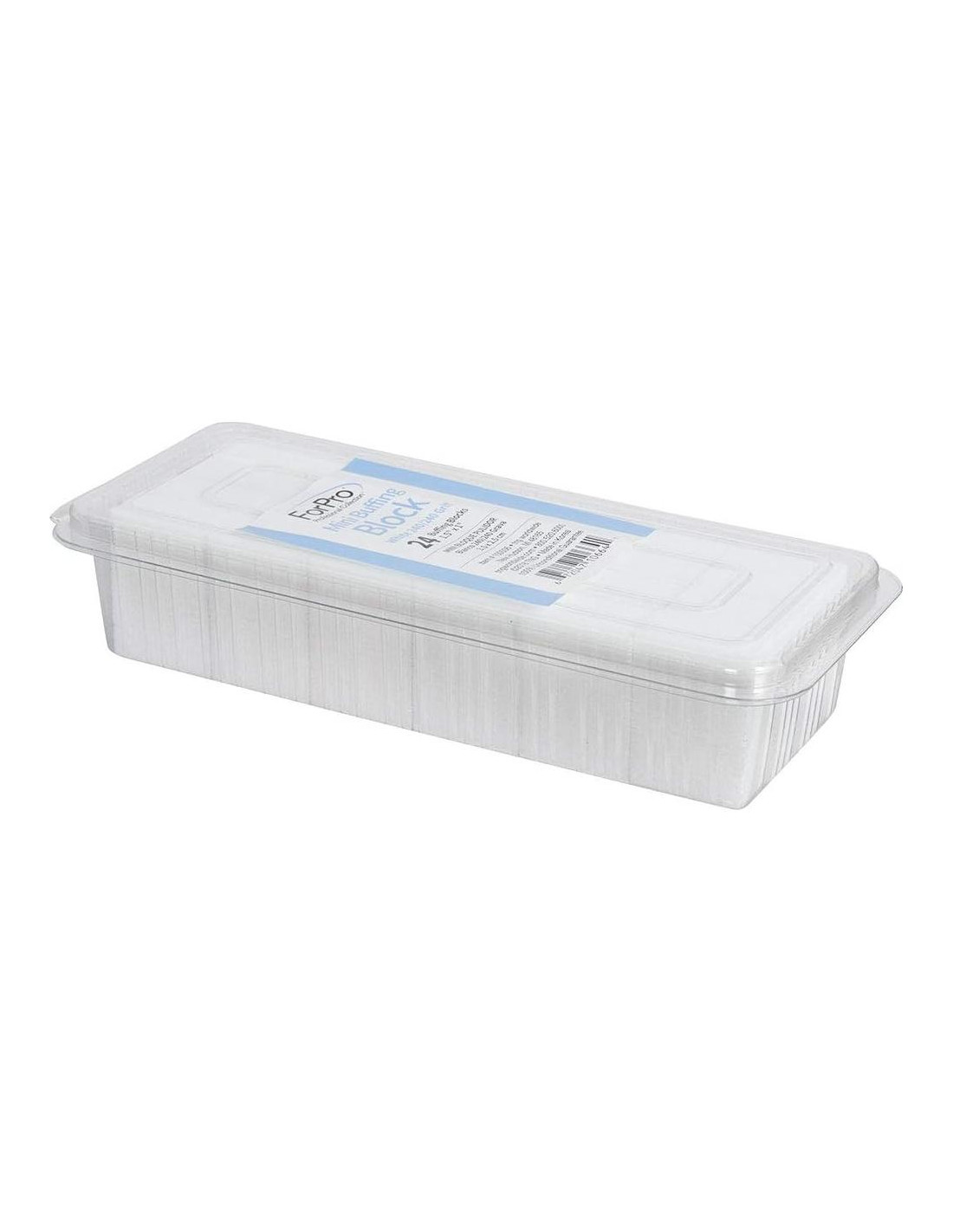 - Bloque de Pulido: Los bloques de pulido blancos ForPro vienen en una caja de 24 unidades y miden 3.81 cm L x 2.54 cm W x 1.27 cm H cada uno. Estos pulidores de uñas están empaquetados para conveniencia en recipientes de almacenamiento claros y reutilizables.
