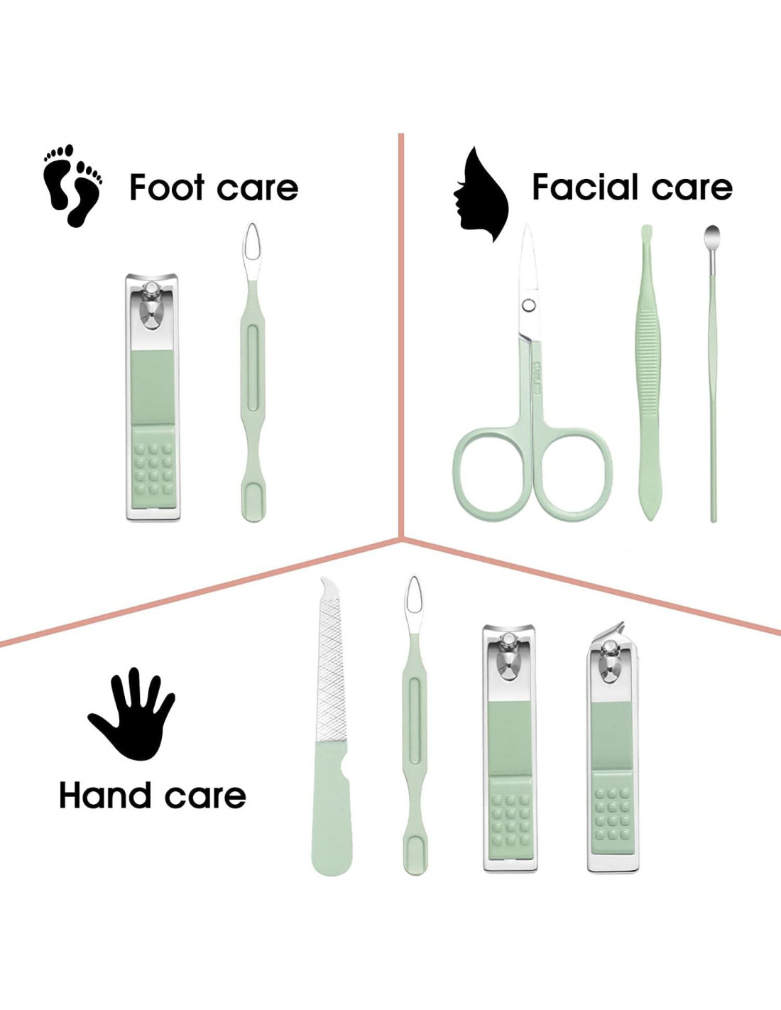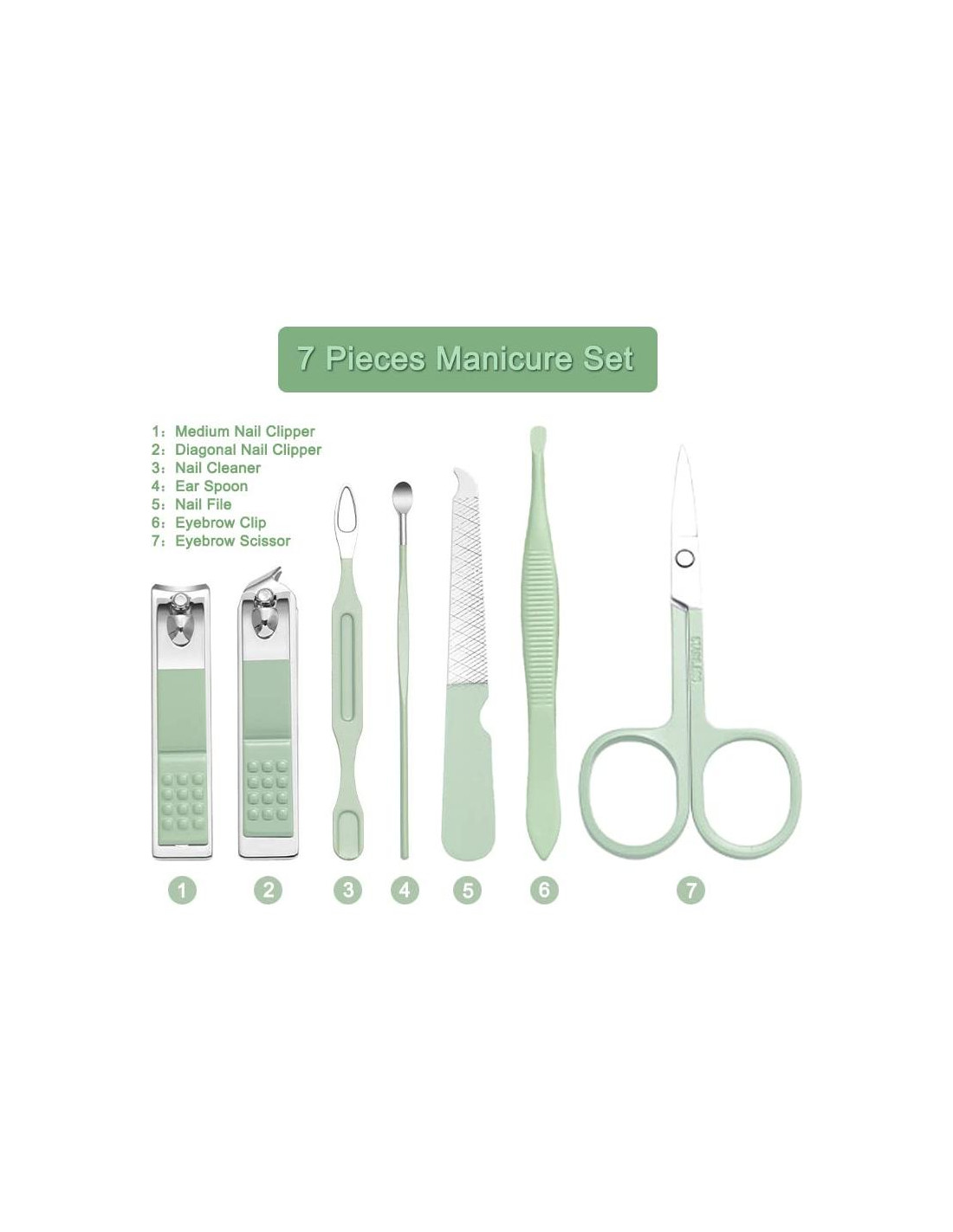 - Juego de Manicura de 7 Piezas: contiene 7 herramientas de kit de cuidado personal, puede satisfacer todas tus necesidades de cuidado de manos, facial y pies. Estilo de Viaje Mini.