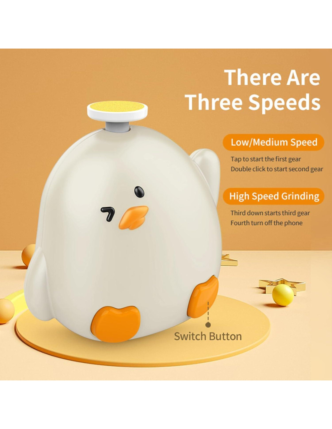 - Bajo Ruido - El ruido de nuestra lima de uñas puede ser inferior a 35dB en la velocidad 1, para proporcionar una experiencia de cuidado suave para el bebé, no asusta al bebé, adecuado para usar cuando el bebé está durmiendo.