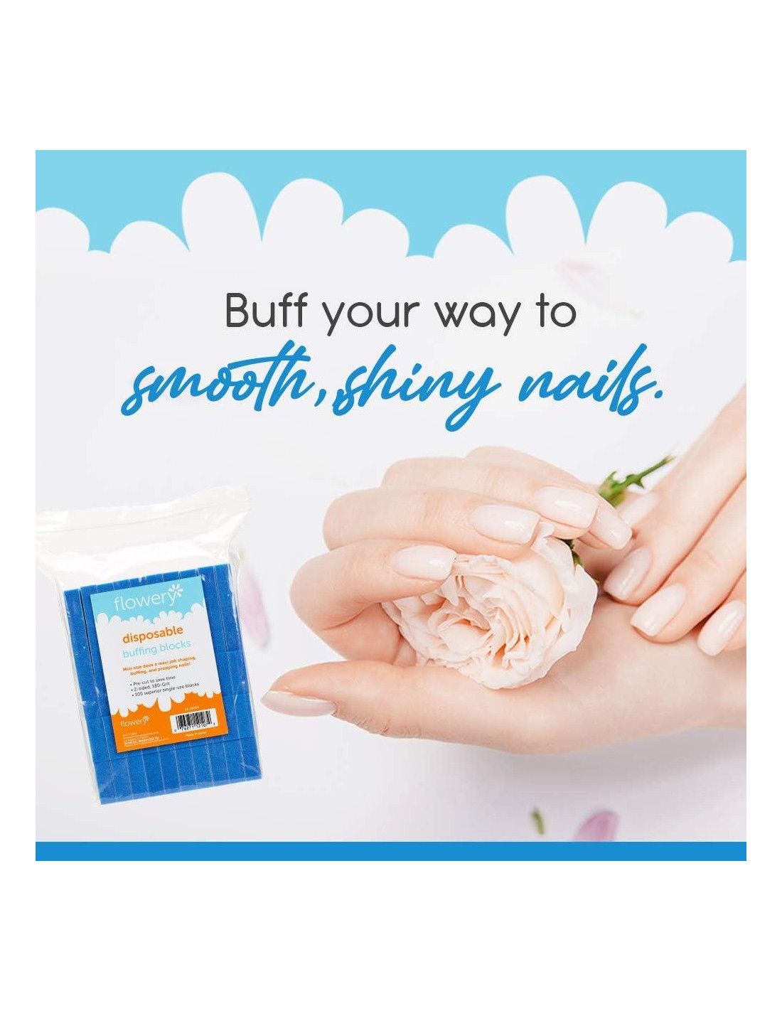 - Bloques de Pulido de Grado de Salón: Los Bloques de Pulido Desechables Flowery en Azul son mini pulidores de alta calidad y duraderos diseñados para suavizar y dar brillo a todo tipo de uñas sin rayar ni dañar la uña natural.