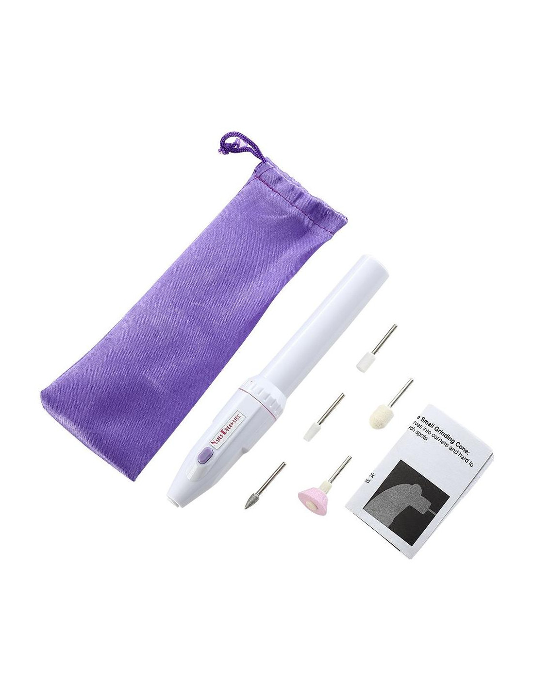 Con el tiempo me di cuenta de que necesitaba uno como este. Así que decidí conseguir uno. Compré algunos materiales para hacerme las uñas en casa en lugar de pagar en el salón. Es menos costoso para mí. Con el tiempo me di cuenta de que necesitaba uno como este. Así que decidí conseguir uno. Cuando llegó por correo, no incluía baterías. Así que necesito conseguir algunas. Son baterías AA 2pcs. Finalmente lo usé este fin de semana y funciona muy bien. Desde moler hasta pulir. No tengo ningún problema con él. Es una buena compra. Resultó ser genial. Me encanta esto, es genial para viajar también por la forma en que está empaquetado. Viene en una pequeña bolsa para mantener todo junto. Primero pensé que esto sería algo barato y resultó ser un gran producto. Me hice mi propia manicura esta vez y se ve profesional. Cinco Accesorios Intercambiables y CÓMO USAR 1. Removedor de Callos de Metal en Forma de Cono X 1 Lima y elimina la piel endurecida y los callos alrededor del dedo y el dedo del pie, especialmente para el callo de la mano. 2. Cabezal de Pulido Grueso en Cilindro X 1 Pulir el borde de la uña, darle forma a la uña como desees, puedes usarlo a lo largo del borde de tu uña. 3. Cabezal de Disco Grueso Rosa X 1 Pulir la esquina de la uña, suavizar el borde. 4. Formador Suave en Cilindro X 1 (Más grande que el Cabezal de Pulido) Pulir la punta de la uña, eliminar la textura desigual. 5. Cono de Fieltro Suave para Pulir X 1 Pulir la uña para completar la manicura o pedicura. Cualquier pregunta, no dudes en contactarnos...