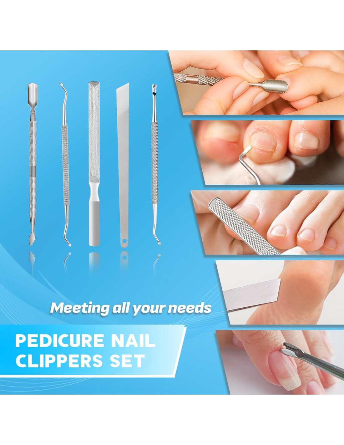- Lo que recibirás: juego de cortauñas 8 en 1 para hombres, incluye: 1 cortauñas de cabeza angulada, 1 cortauñas grueso de 360, 1 cortauñas angulado de 45, 1 lima de uñas, 1 levantador de uñas encarnadas, 1 empujador de cutículas, 1 herramienta de hoja inclinada, 1 empujador en forma de U, 1 manual de usuario, 1 caja de almacenamiento. Si no estás satisfecho con este juego de cortauñas de alta resistencia diseñado especialmente para uñas gruesas, por favor contáctanos, ¡estamos felices de ayudar!