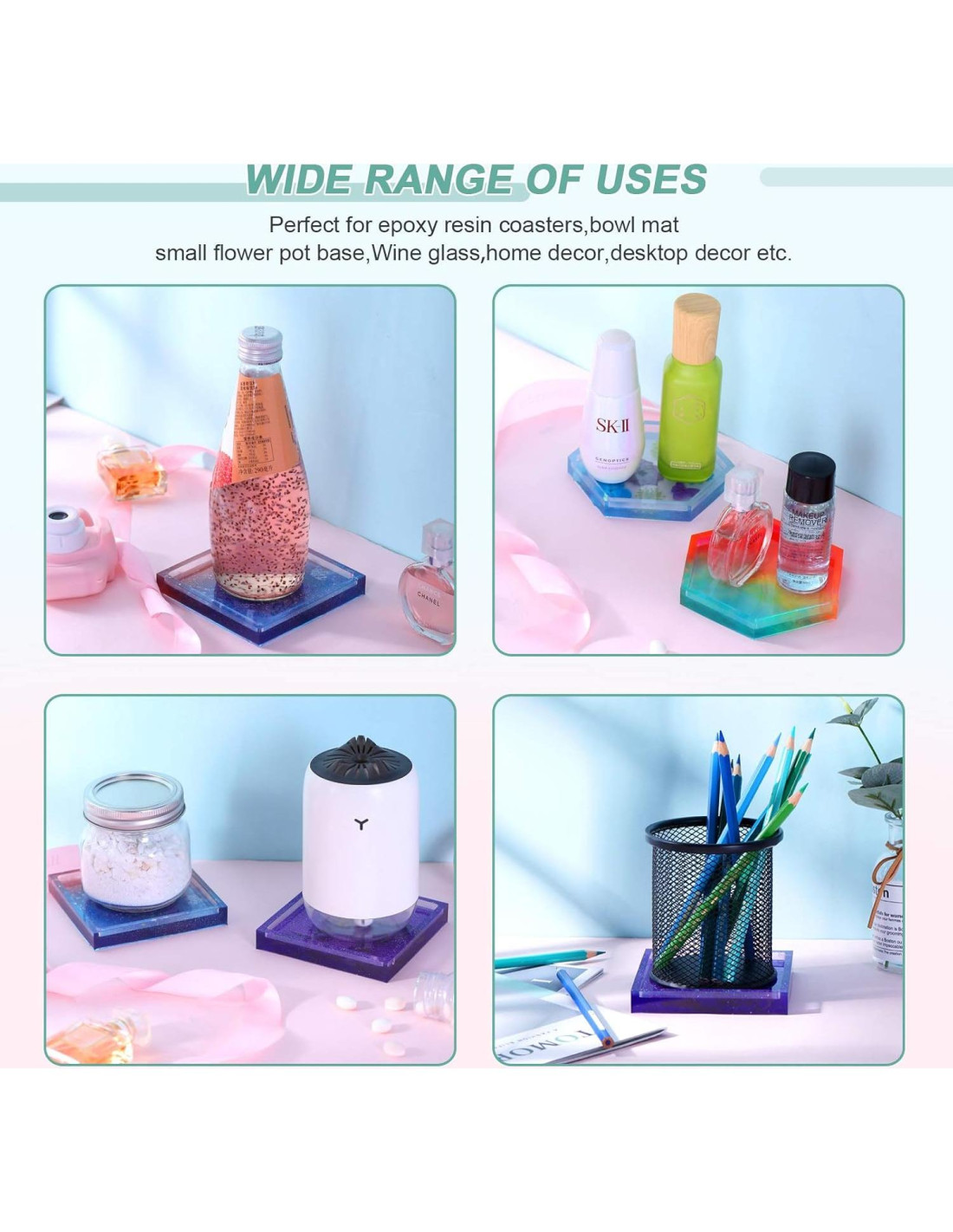 - Imprescindible para Entusiastas del Bricolaje: Ya sea que seas un fanático de diversas artes y manualidades, proyectos de bricolaje o ideas de decoración del hogar, o simplemente quieras disfrutar de un pasatiempo relajante, estos moldes de posavasos de resina son la solución perfecta.