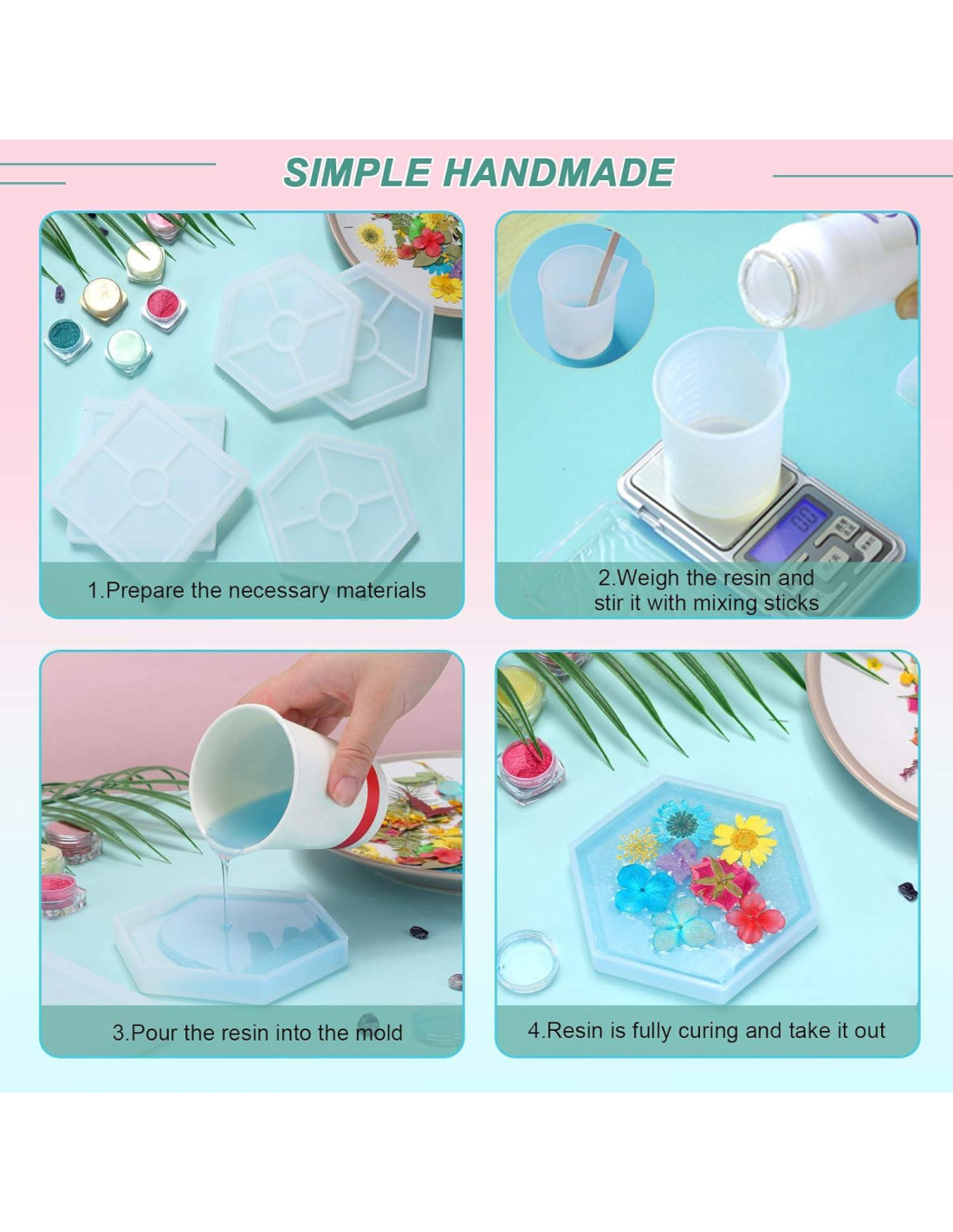 - No Pegajoso y Flexible: Estos moldes de resina epóxica cuentan con una flexibilidad y durabilidad mejoradas, al mismo tiempo que tienen una textura no pegajosa y son fáciles de desmoldar en segundos. ¡No más experiencias frustrantes que arruinen tus obras de arte!