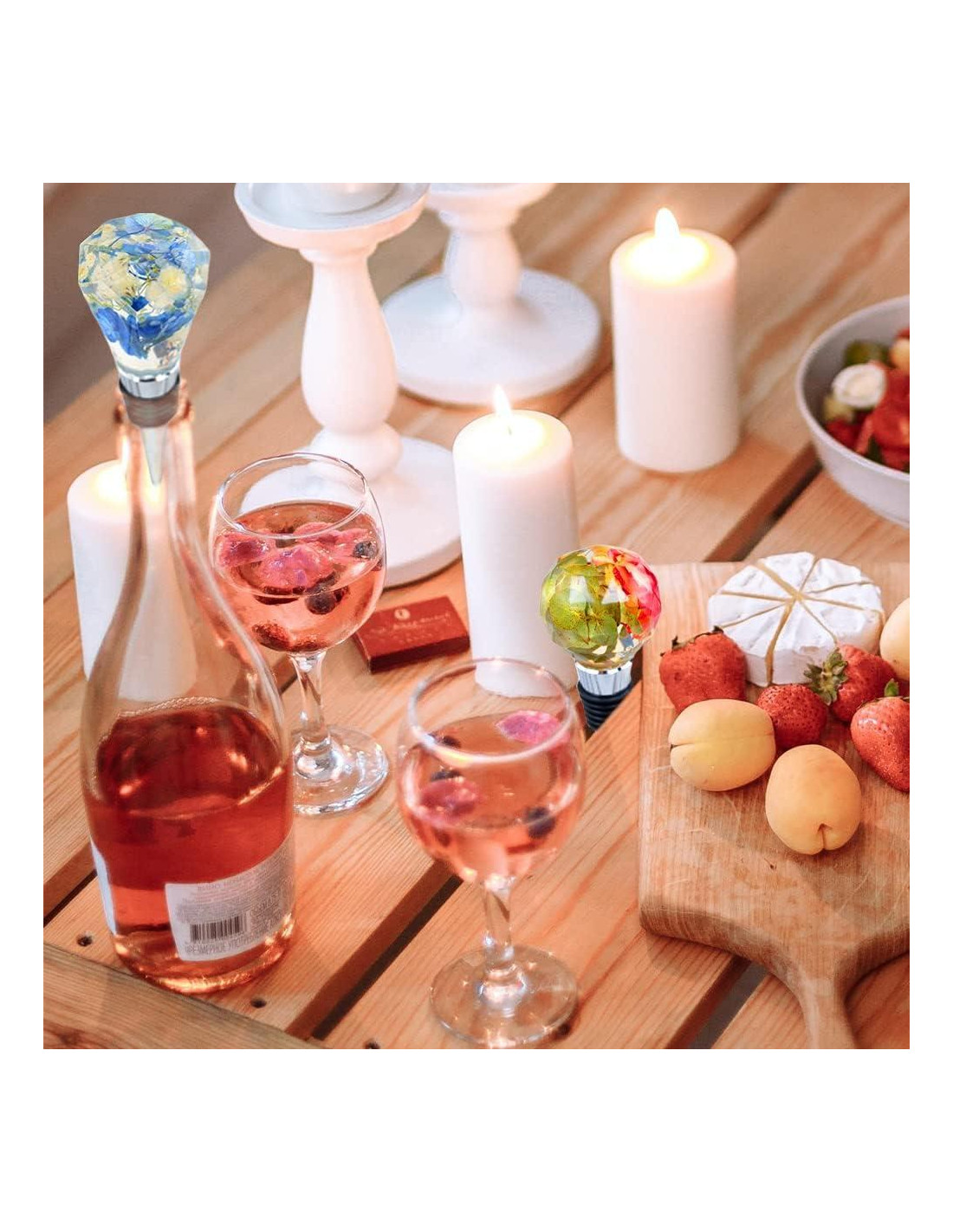 - [FÁCIL DE USAR] Solo vierte la resina en el molde y añade flores secas u otros adornos que te gusten; Espera el proceso en frío; Finalmente, retira fácilmente tu proyecto. Usa pegamento caliente o resina UV para conectarlos al tapón, ¡entonces podrás obtener tu tapón de botella de vino único y llamativo!