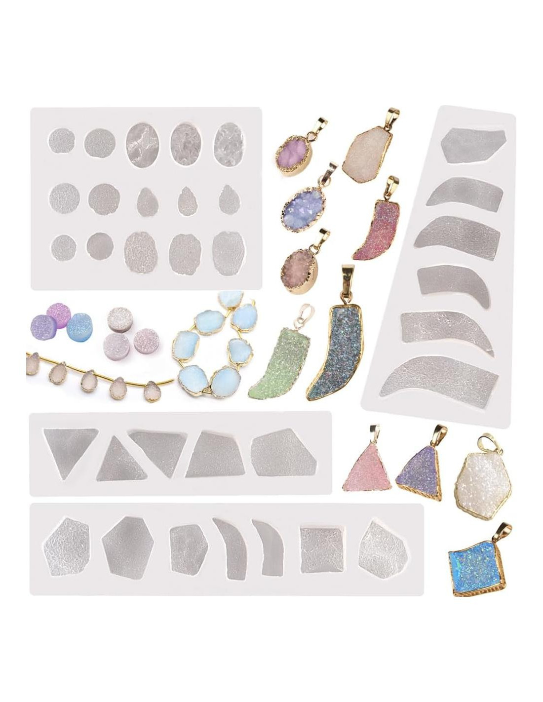- Moldes de fundición de resina para charms de collar en rebanadas, colgantes de drusa gruesa, pulsera de cuentas boho, pendientes delicados y más. DIY regalos únicos de Navidad, cumpleaños, día de la madre, boda, año nuevo para tus amigos y familiares.