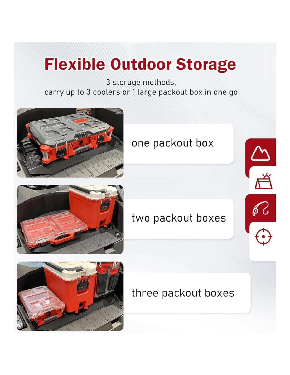 - Selección Flexible: La placa de montaje versátil te permite asegurar 3 enfriadores pequeños / cajas packout o 1 packout grande de una vez, convirtiéndola en un elemento imprescindible para aventuras al aire libre. Perfecta para offroad, camping, pesca y caza, dándote la flexibilidad de llevar todos tus esenciales