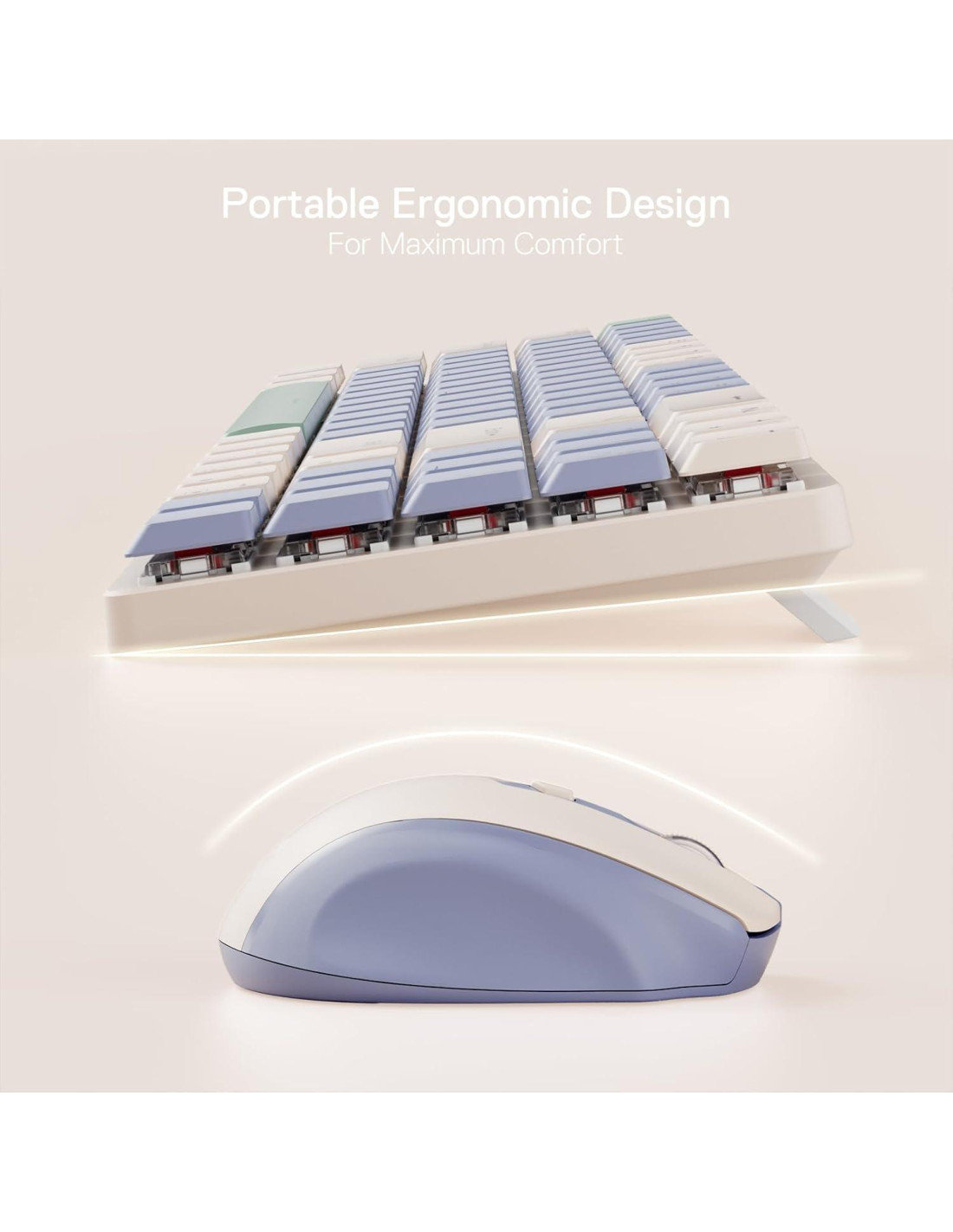 - Comodidad Ergonómica - Con patas de teclado ajustables en 2 etapas y un ratón de forma contorneada y ligero, tanto la escritura como el agarre son más naturales y reducen la fatiga al máximo, haciéndolo ideal para largas horas de uso de tu computadora o laptop.