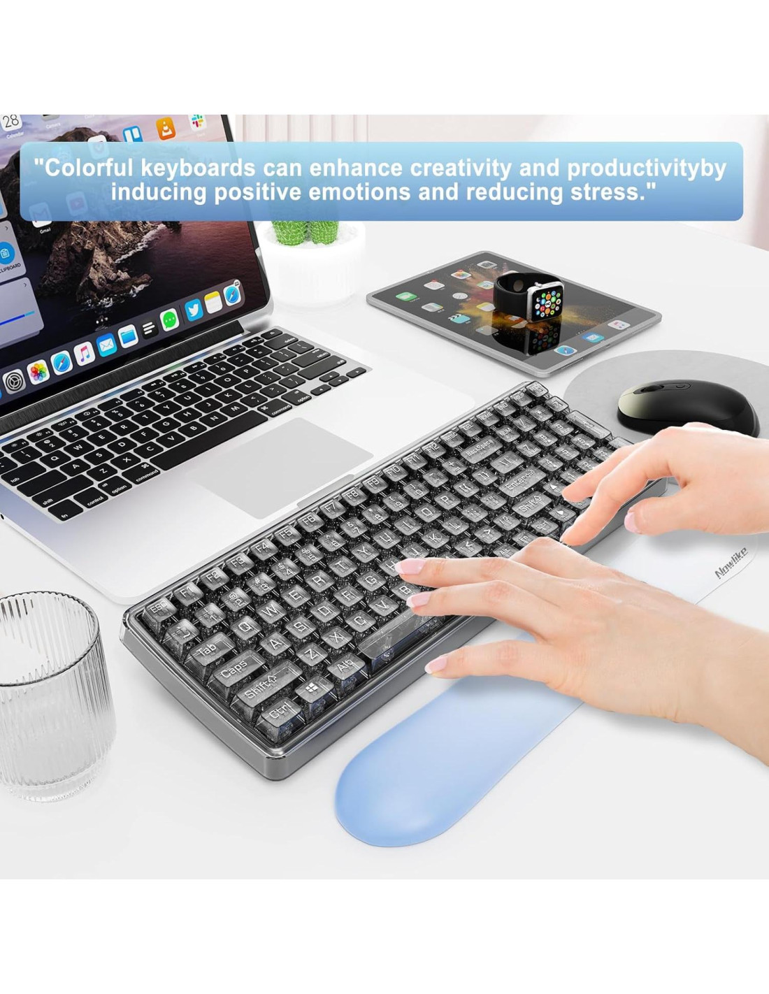- [JUEGO DE TECLADO Y RATÓN INALÁMBRICO TRANSPARENTE] Combinando elegancia atemporal con tecnología contemporánea, este juego de teclado y ratón transparente es la elección perfecta para los marcadores de tendencias. ¡Comienza tu día con un toque de sofisticación chic!