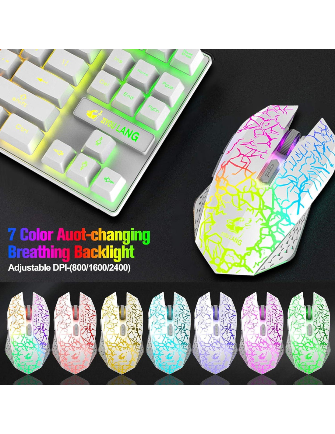 - [Ratón de Juegos con Diseño Cool Cracked] Este ratón inalámbrico está diseñado con un patrón agrietado genial y retroiluminación de respiración que cambia automáticamente de color, 6 botones, 3 niveles de DPI ajustable (800-1600-2400), hacen que su uso sea más flexible y preciso, y está hecho de material ABS de alta calidad y carcasa ergonómica, aseguran un uso cómodo durante mucho tiempo sin fatiga, también tiene un interruptor de luz para encender/apagar la retroiluminación, muy práctico.