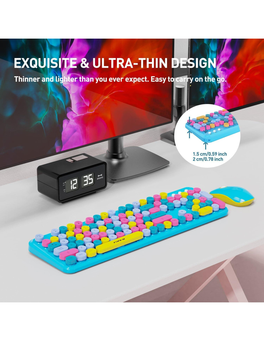 - Color: Teclado y Ratón Inalámbricos Azul Colorido