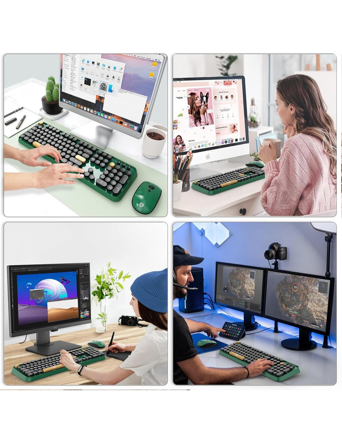 - Una fusión de estilo retro y diseño moderno: La inspiración de estas lindas teclas redondeadas proviene de máquinas de escribir vintage, ofreciéndote disfrute visual y una sensación retro al escribir. El ratón óptico mini tiene un diseño ergonómico moderno, DPI ajustable (800-1200-1600). El combo te brindará una sensación nostálgica con su estética retro llamativa.