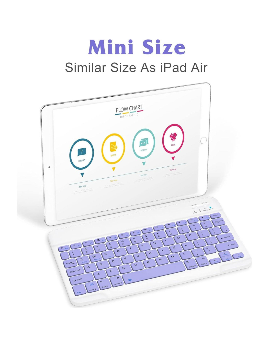 - Sin Cable: Conexión Bluetooth con tus dispositivos móviles como tablets y teléfonos móviles. Te brinda más comodidad cuando necesitas escribir. Distancia de operación de hasta 30 pies (9 metros).