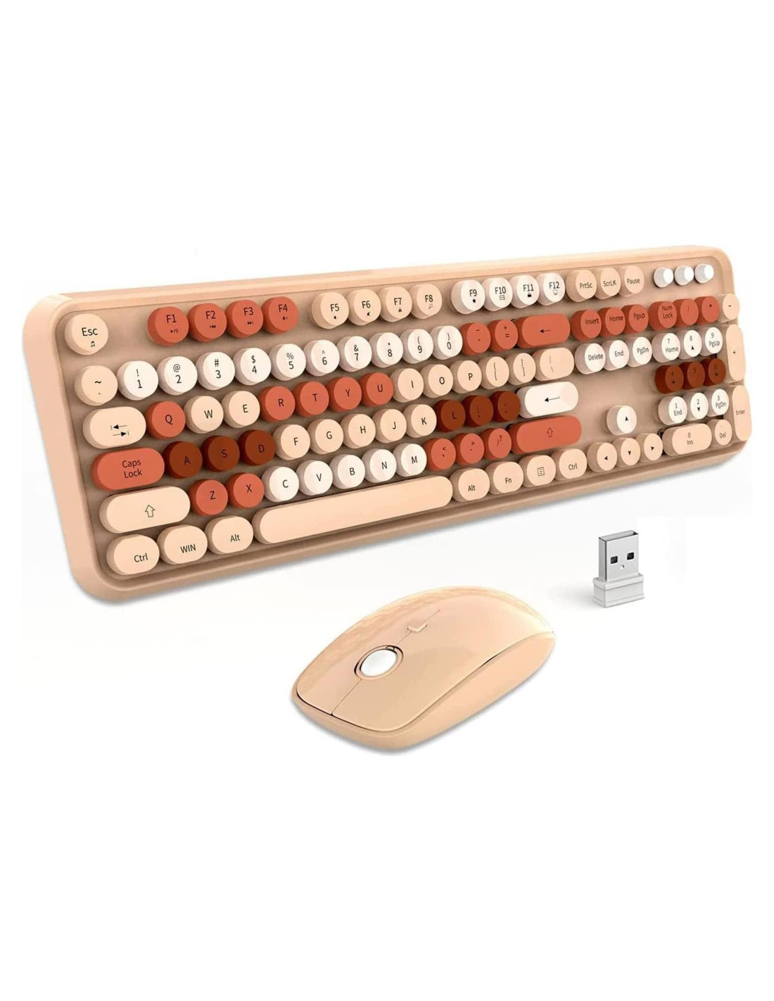 - Estilo Retro y Diseño Moderno. El Teclado y Ratón Inalámbrico Colorido incluye un Teclado Vintage con Teclas Redondas de Estilo Retro y un Ratón Inalámbrico. KIT DE VALOR PARA JUGADORES DE PC TODO EN UNO. ATENCIÓN: El CONECTOR PARA LA PC ESTÁ EN LA PARTE TRASERA DEL RATÓN.