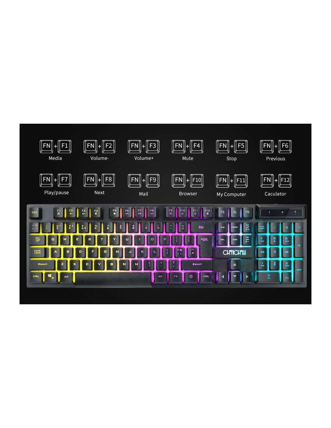 - [Teclado y Ratón para Juegos] Teclado para juegos con retroiluminación cambiante en 4 colores, con 4 niveles de ajuste de brillo y 3 modos de respiración. El ratón tiene un efecto de iluminación cíclica gradual de 7 colores incorporado, 3 niveles de DPI ajustable (1200, 2400, 3200). Hay un modo de iluminación permanente manual, modo de respiración automático/manual. Presionando 'Fn+' se puede aumentar/disminuir el brillo.