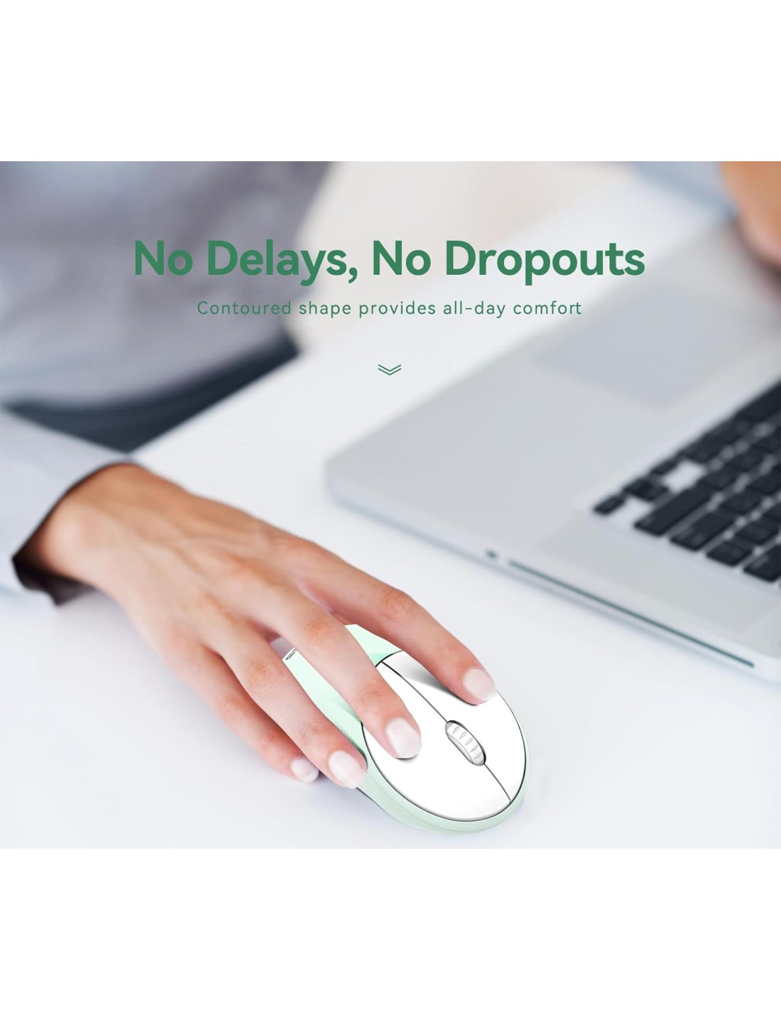 - [Ratón Lindo y Ligero] Este ratón inalámbrico cuenta con un rodillo antideslizante para un funcionamiento suave y un diseño único de fondo elevado para reducir la fricción y el desgaste. El diseño elevado único en la parte inferior reduce la fricción y el desgaste, asegura un deslizamiento suave, proporciona buen soporte y estabilidad, extiende la vida útil, y puede adaptarse perfectamente a escritorios hechos de diferentes materiales como cuero, madera, tela y papel. Además, el diseño de clic silencioso evita molestias a quienes te rodean