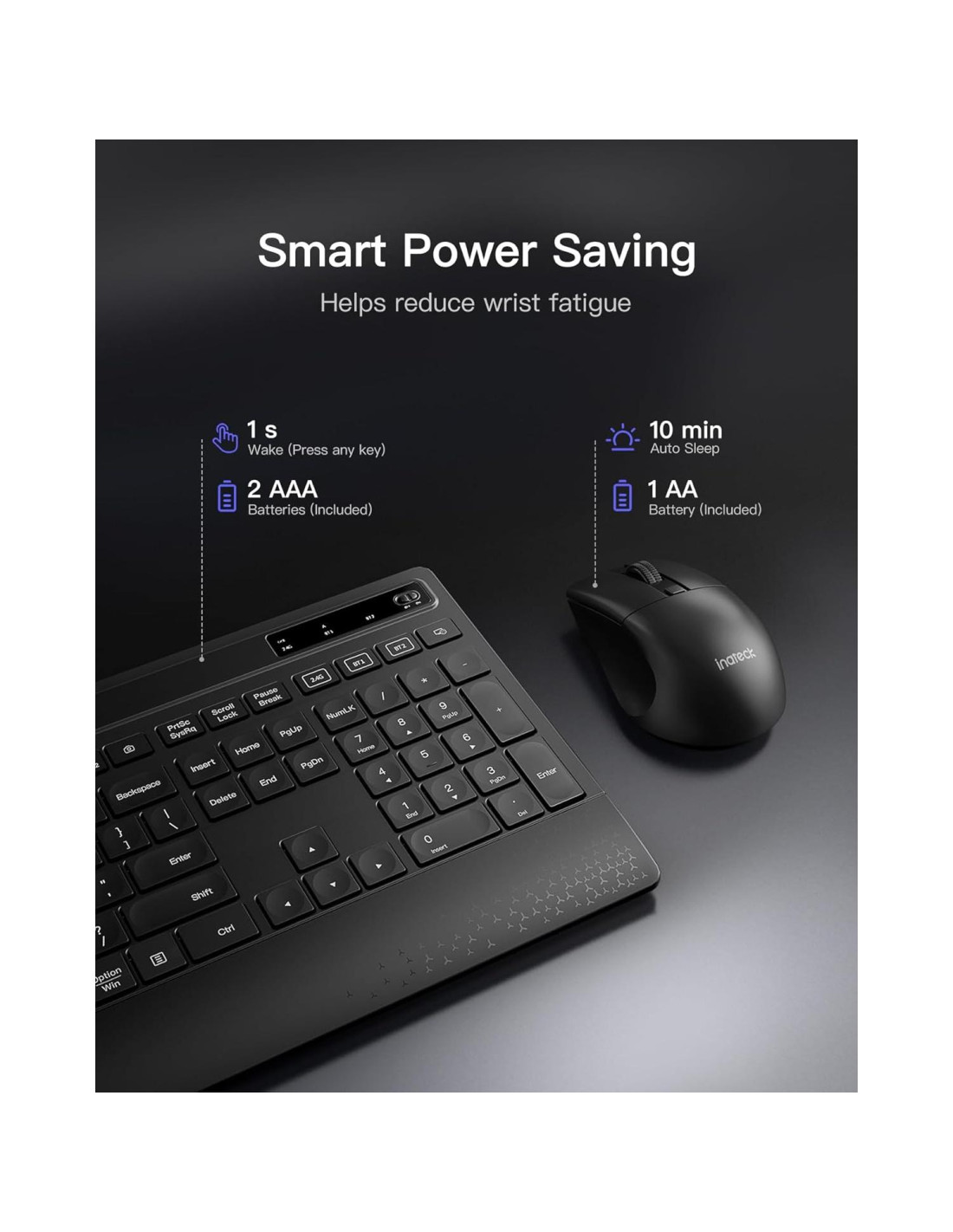 - Ahorro de Energía y Duradero: El combo de teclado y ratón bluetooth está equipado con un modo de suspensión inteligente para conservar energía. Entra en modo de suspensión después de 30 minutos de inactividad y se puede reactivar con cualquier pulsación de tecla. Las baterías pueden durar meses. El teclado requiere dos baterías AAA, mientras que el ratón utiliza una batería AA (baterías incluidas)