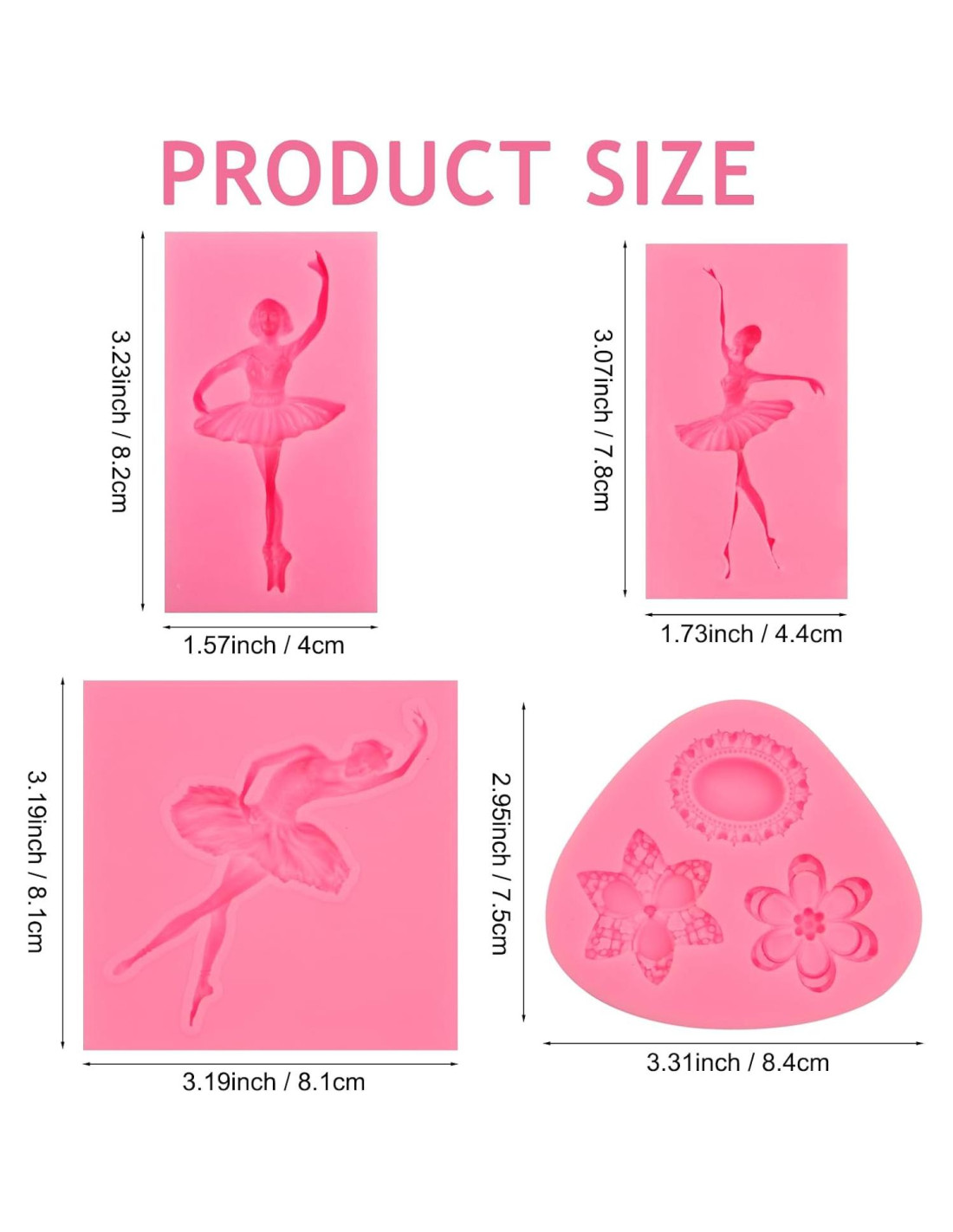 - JUEGO VERSÁTIL: El paquete incluye 4 moldes de silicona de diferentes chicas bailarinas con poses elegantes y diseños decorativos de gemas y flores