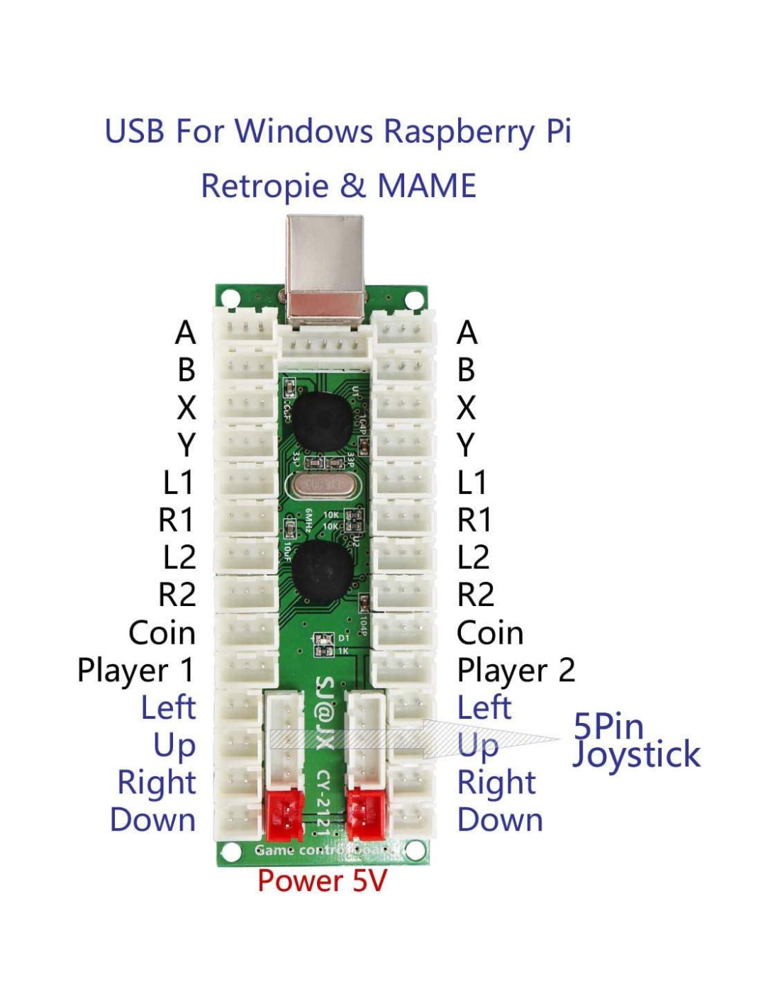 - Codificador USB SJ@JX 2121 Sin Retraso para PC MAME Raspberry Pi y Android. Adecuado para LED de 5V.
