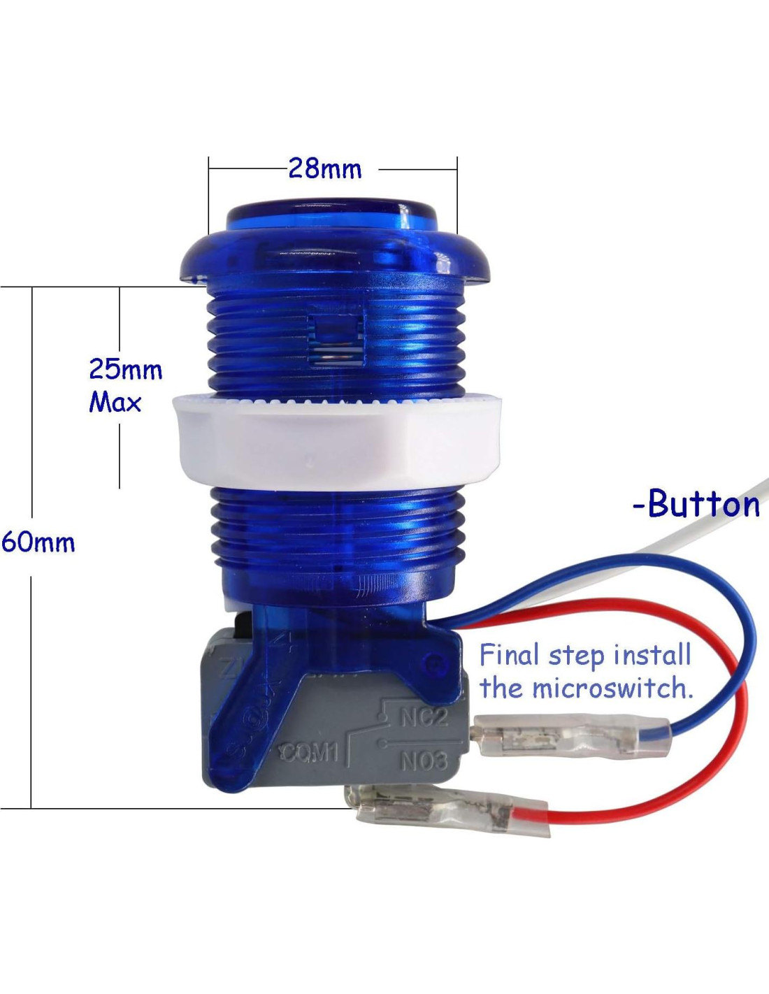 - Agujero de Botón 28mm, Agujero de Joystick 24~30mm, Cable USB 180cm, Cable de Botón y Joystick 35cm.