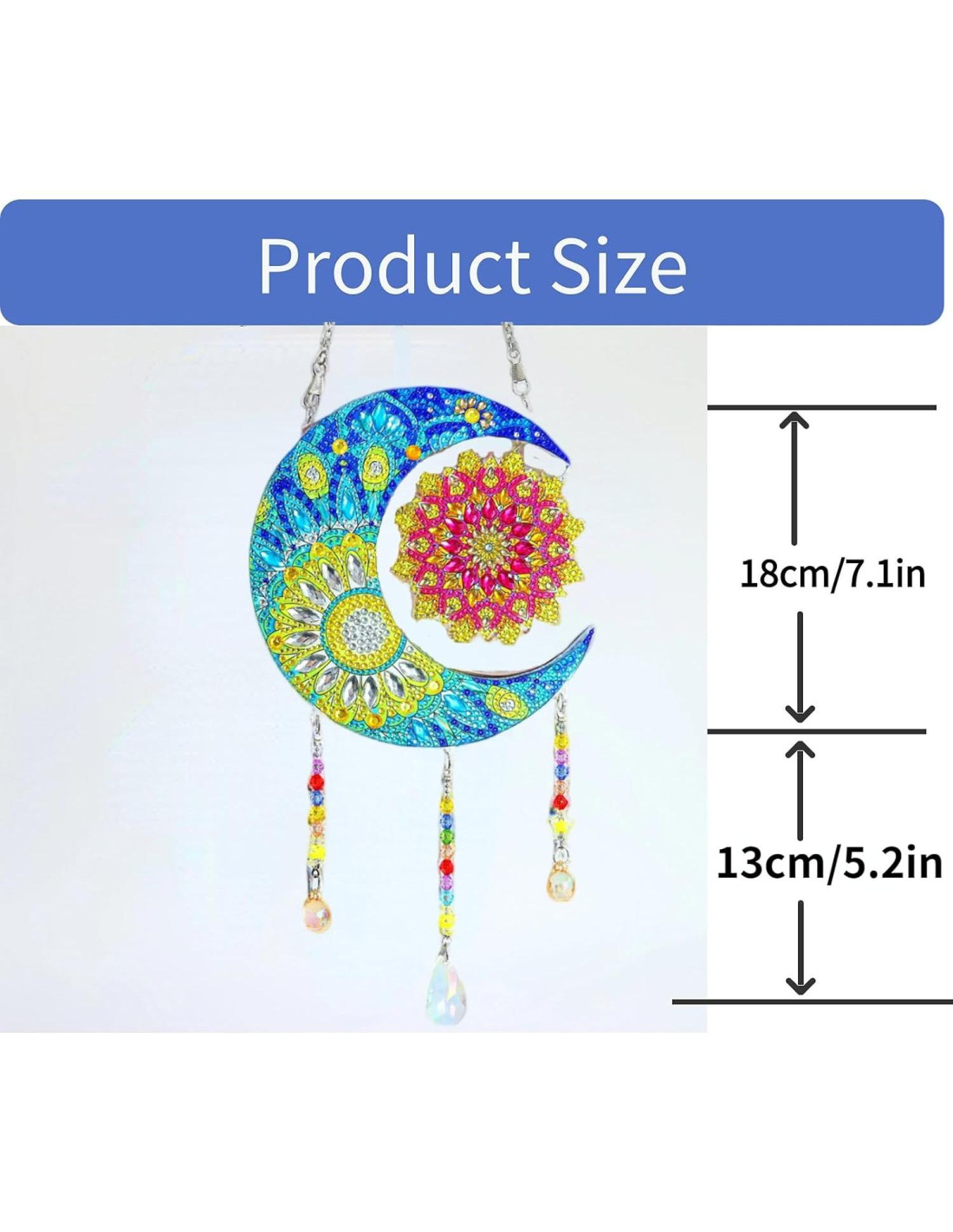 - Diseños Exquisitos para Elegir. Los Kits de Pintura de Diamante están diseñados en lindos diseños de formas de luna y flores, con cuentas coloridas, diamantes falsos y cristales brillantes, los atrapa-soles de ventana interior son delicados y decorativos, permitiéndote elegir el que más te guste para DIY y decorar como desees.