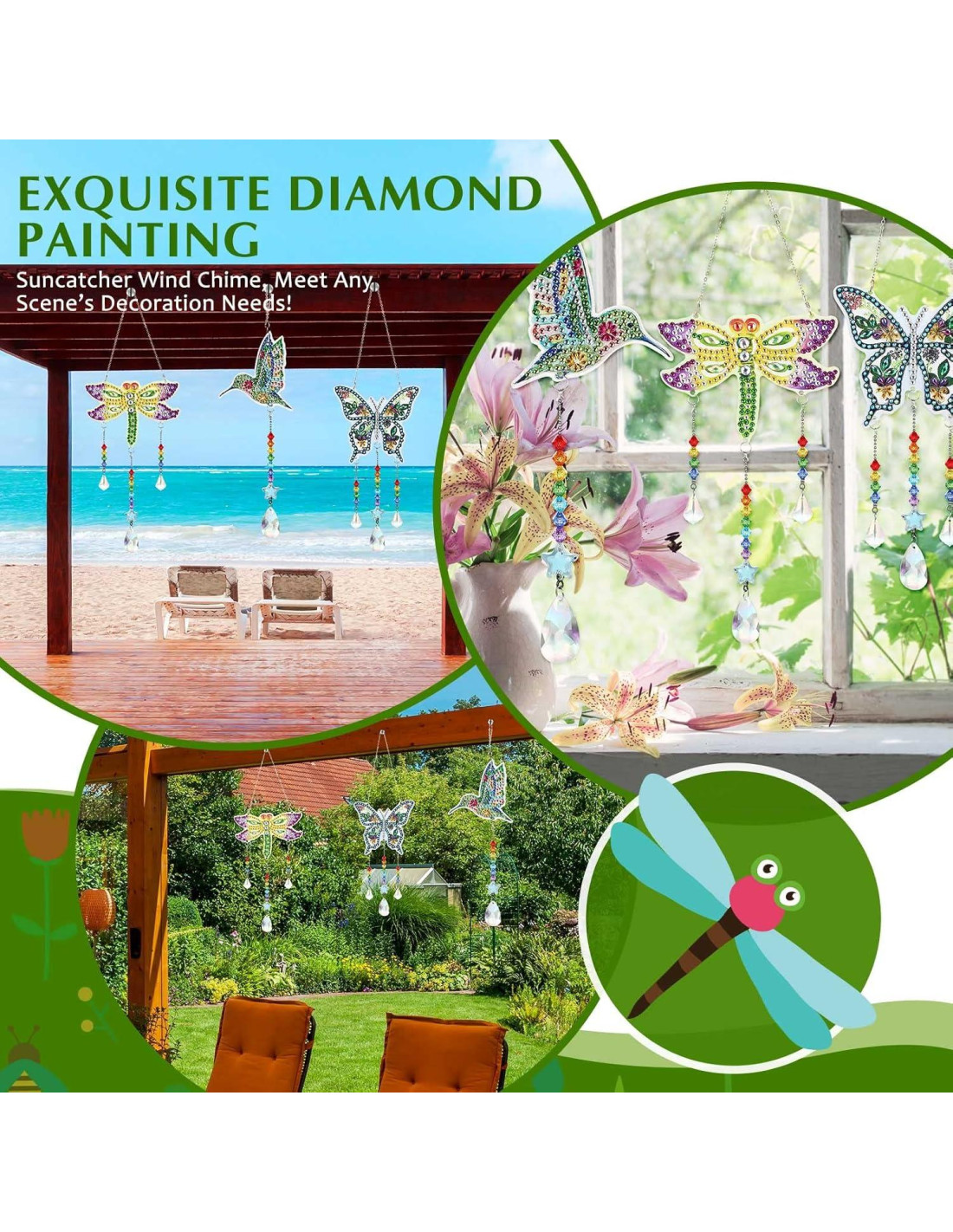 - 3 Diseños Exquisitos para Elegir: diseñados en 3 diferentes diseños lindos de formas de mariposa, libélula y colibrí, con cuentas coloridas, diamantes falsos y cristales brillantes, los atrapa rayos de sol para ventana interior son delicados y decorativos, permitiéndote elegir el que más te guste para DIY y decorar como desees