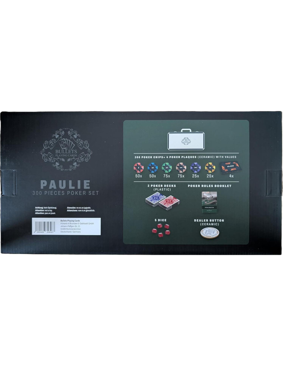 - PAQUETE DE ACCESORIOS COMPLETO: Viene con un botón de crupier de cerámica, dos barajas de cartas de poker Bullets, cinco dados y un libro de reglas de poker. Todo lo que necesitas para una noche de poker realista está convenientemente incluido en este set.
