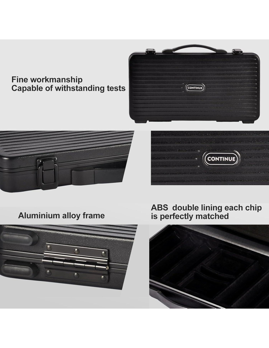 - [Caja de Fichas de ABS de Alta Gama] Hecha de material ABS de alta calidad y un núcleo interior de doble capa con un marco de aleación de aluminio alrededor de los bordes, resistente y duradero, muy conveniente y fácil de almacenar. Diseño clásico en color negro, simple y generoso que no pasará de moda.