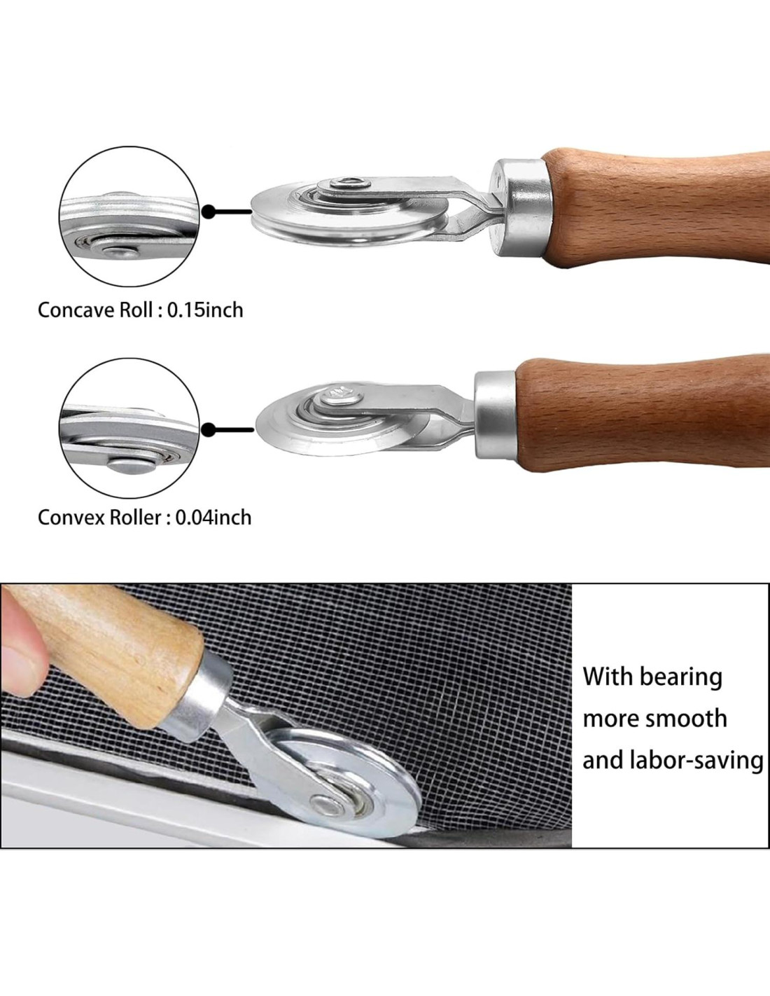 - 2 EN 1: La herramienta de rodillo de pantalla tiene dos ruedas diferentes, rodillos convexos y cóncavos, puede ayudarte a hacer el trabajo mejor y más rápido. Una herramienta imprescindible para instalar pantallas de ventanas y pantallas de puertas.