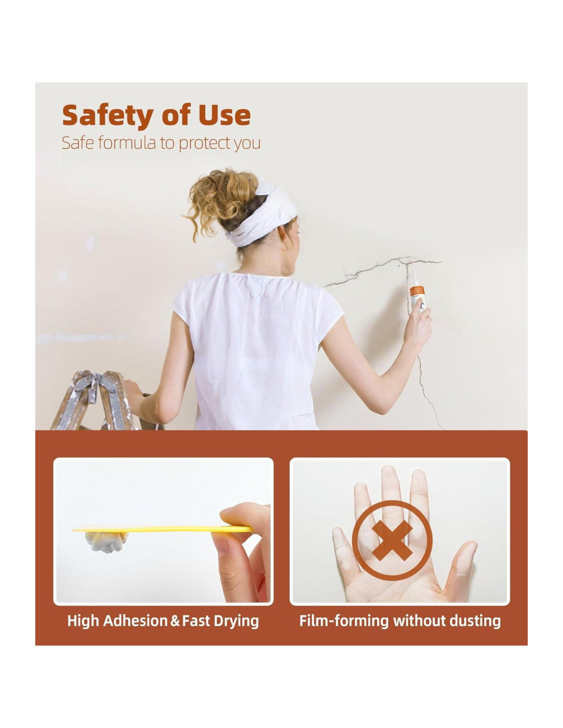 - Pasos Simples y Resultados de Expertos: Masilla semi-fluida blanca para una fácil reparación de agujeros de clavos, grietas y rasguños. Simplemente exprima, raspe, después de secar y lijar, se puede pintar a solicitud