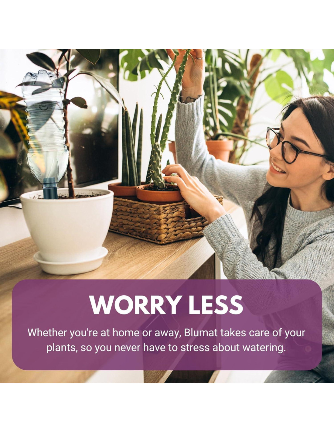 La principal razón por la que las plantas de interior mueren es por un riego inadecuado, principalmente por riego excesivo, pero también por olvidar regar. Blumat fabrica algunos de los mejores productos para mantener tus plantas de interior correctamente regadas, manteniéndolas saludables y felices. Simple, eficiente y fácil de instalar; tus plantas pueden cuidarse solas mientras estás de vacaciones o ocupado con el resto de tu vida. Estos son los originales Estacas Adaptadoras de Botella Blumat, diseñadas específicamente para plantas de interior. Las Estacas Adaptadoras de Botella Blumat aseguran un suministro constante de agua al sifonar agua de una botella estándar a tus plantas. ¡Olvídate de los complicados sistemas de riego para plantas y de los picos de riego de terracota que no funcionan bien! Cuanto más grande sea tu botella, más tiempo podrás dejar tus plantas de interior sin preocuparte por regarlas. Este es el único sistema de riego automático para plantas que necesitarás. Una planta necesita entre 0.25 y 1 litro de agua por semana, así que asegúrate de que tu botella sea lo suficientemente grande.