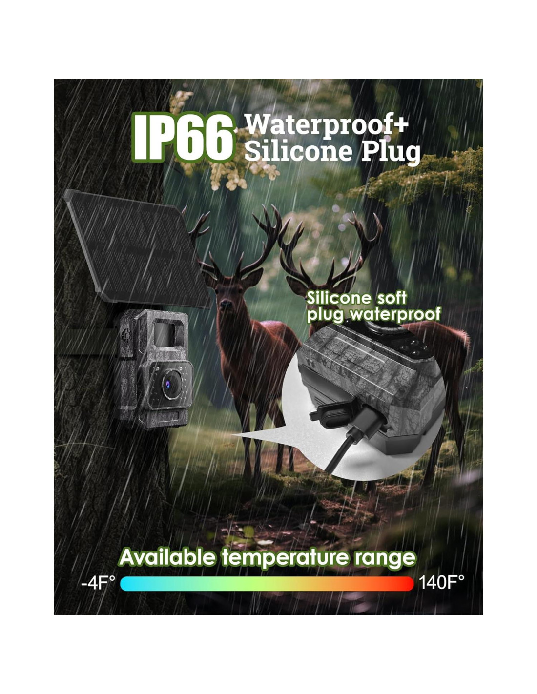 - Excelente impermeabilidad: Clasificada como IP66, esta cámara de caza esencial impermeable opera de manera confiable en condiciones de lluvia o humedad. Su diseño compensado por temperatura asegura un rendimiento constante en calor o frío extremos, haciéndola ideal para monitoreo de granjas y bosques durante todo el año.