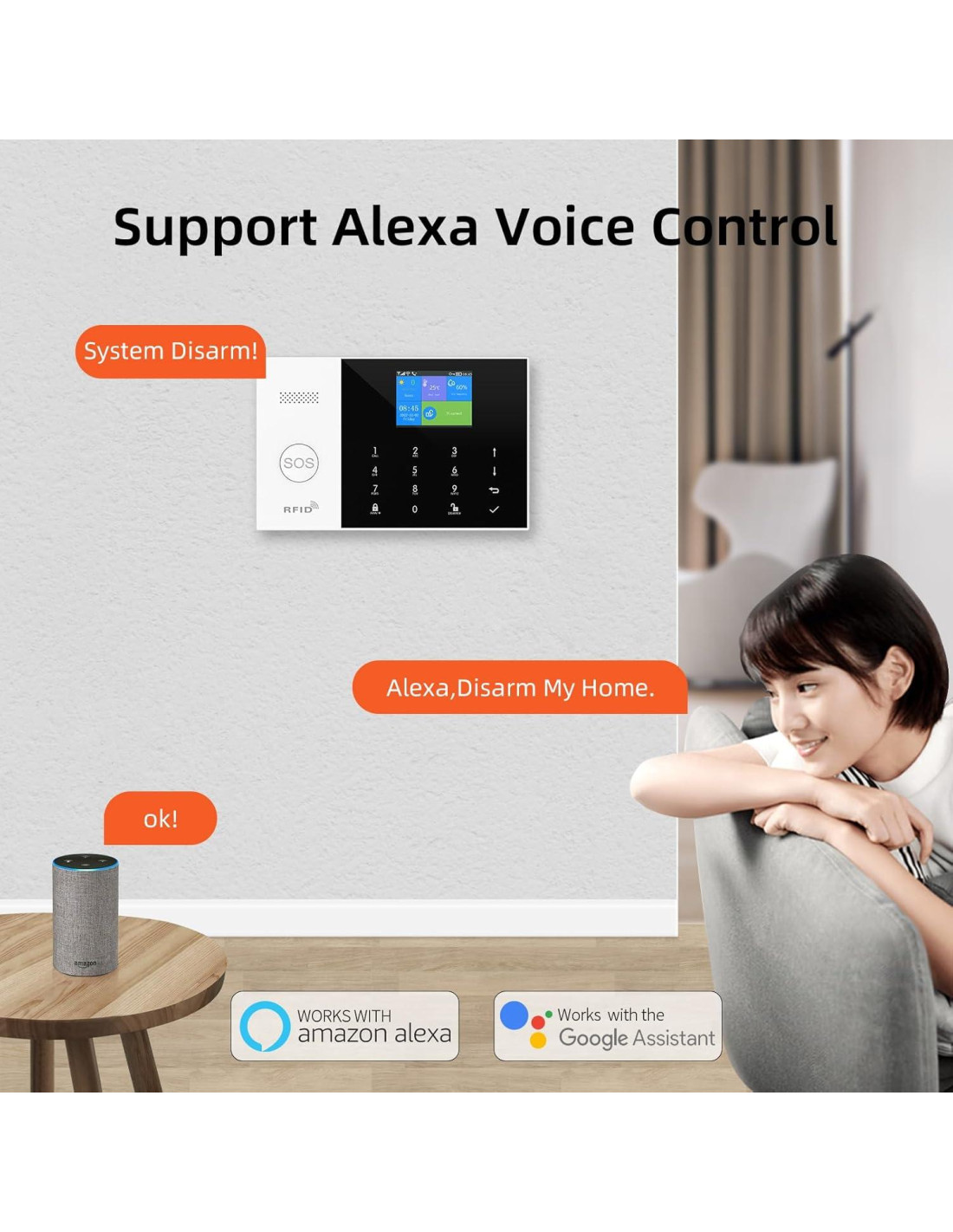 - [WiFi&GSM/4G+FÁCIL DE INSTALAR] : Solo conecta el host de la alarma a la fuente de energía (Si la batería de respaldo tiene suficiente electricidad, se puede usar desenchufado). Luego conecta el host a Wi-Fi a través de la app 'Smart Life'. Soporta tarjeta SIM GSM, puedes usar red GSM/3G/4G. (Solo funciona en WiFi de 2.4GHz. No soporta 5G); NO se necesita profesional, solo instálalo tú mismo, solo necesitas fijar el panel del host a la pared (tornillos incluidos). Puedes instalarlo en minutos.