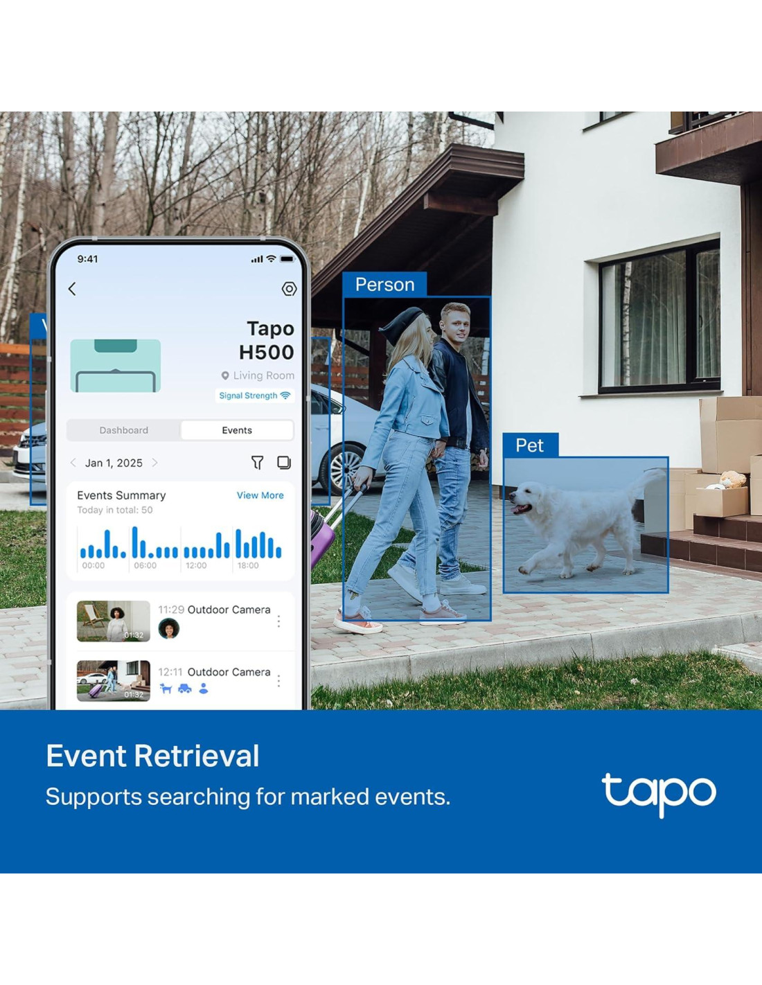 - Tapo H500 conecta y controla hasta 16 cámaras Tapo y 64 sensores Tapo Sub-G, unificando tus dispositivos IoT de hogar inteligente en una sola plataforma.