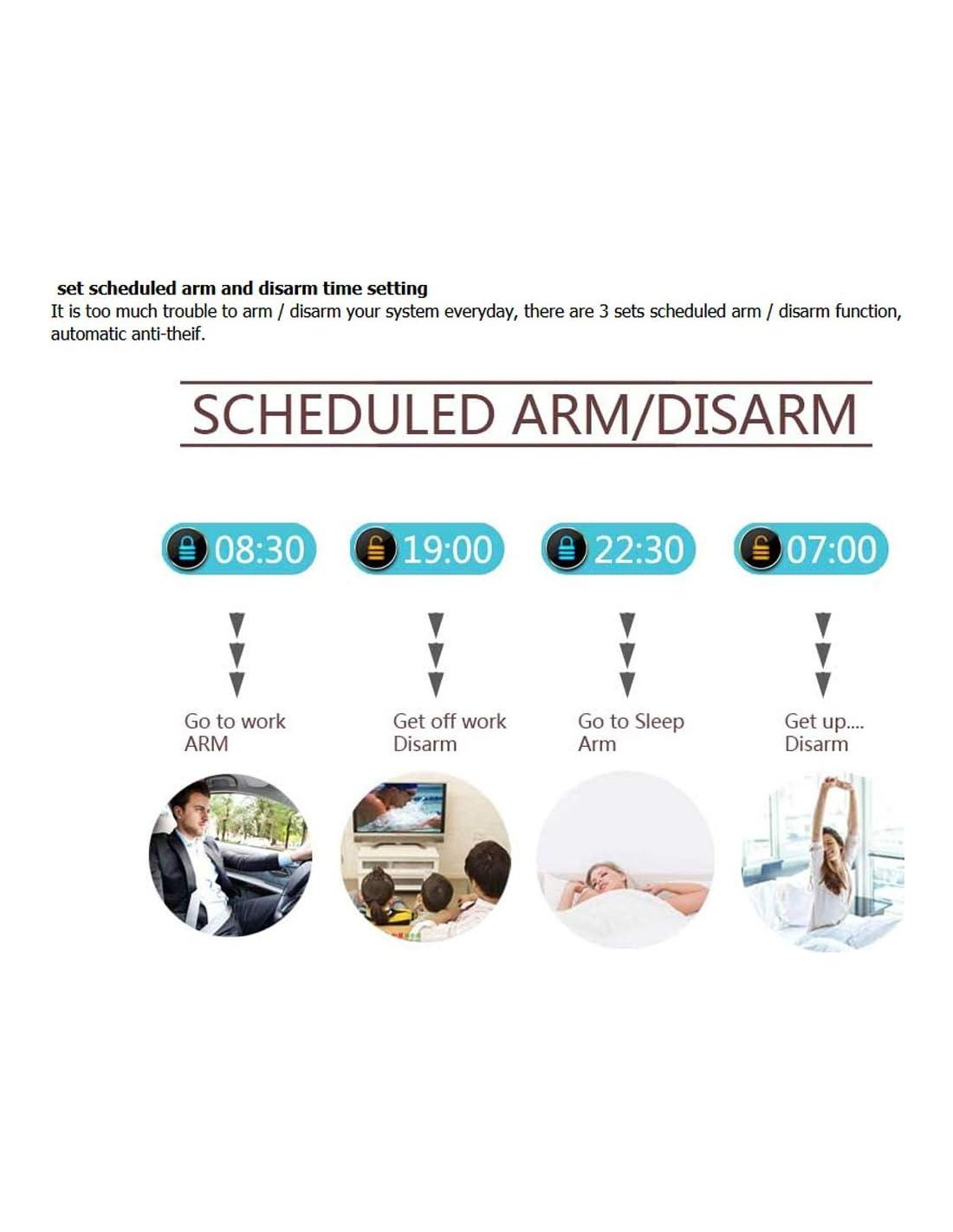 - Sin tarifas mensuales ni contratos con empresas de seguridad, solo paga al proveedor de servicios de telefonía móvil; Inserte una tarjeta SIM GSM (esta alarma no incluye tarjeta SIM GSM) para llamar/enviar mensaje de alerta, puede elegir una de las dos formas o usar todas. Todo el sistema completo con unidad principal totalmente programable y sensores inalámbricos. Antes de usar, por favor lea amablemente el manual del usuario
