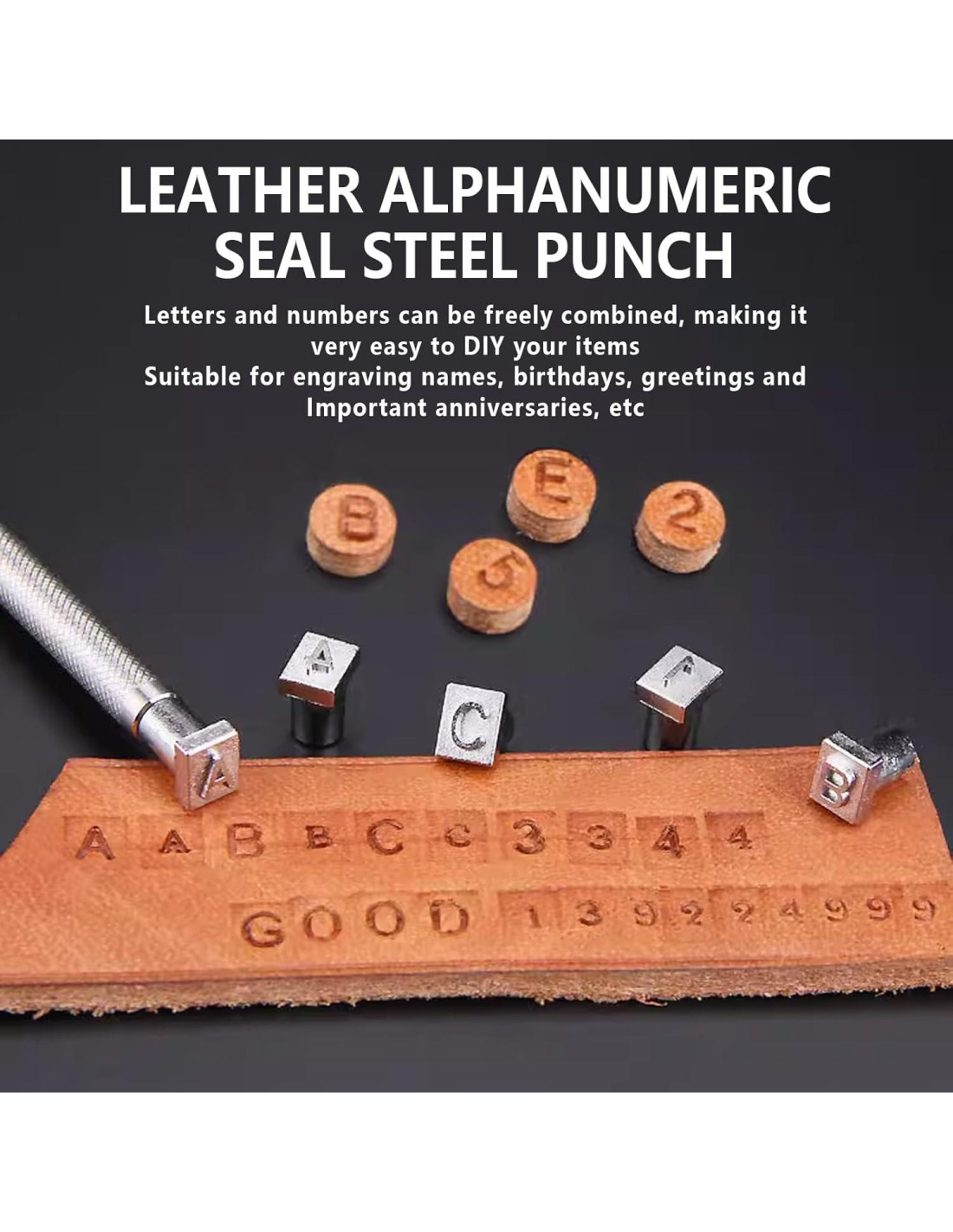- Alfabeto Completo y Números: incluye 26 letras mayúsculas de la A a la Z y 10 dígitos del 0 al 9 con altura de 1/4 pulg (6 mm), permitiéndote personalizar cinturones, billeteras, llaveros y más con nombres, fechas y mensajes personalizados
